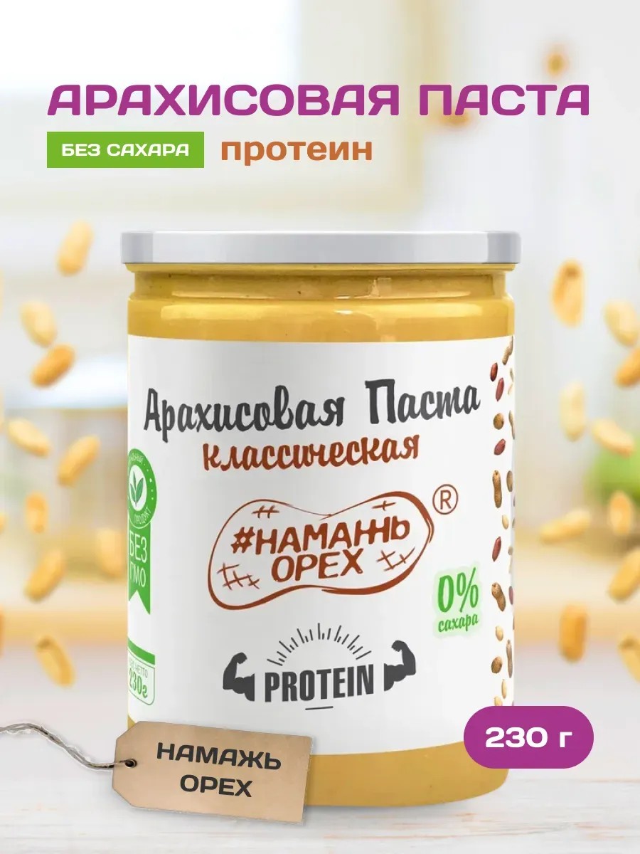 Как поднять себе и близким настроение по утрам? Приобрести натуральную арахисовую пасту ТМ #Намажь орех. Сладкая, но без сахара, уникальная по своим свойствам. В ней сочетается легкая естественная и приятная сладость и нежная текстура перемолотого арахиса. Предоставляется в трёх вариантах: 230 грамм 450 грамм а также 1000 гр. Мы запекаем арахис в воздушной печи, обжарка не производится. Таким образом орехи сохраняют все свои природные свойства. От орехов и его обработки температурой меняется и сам вкус. Мы запекаем орехи так, чтобы масла в них не достигали температуры дымления. Также при этом не образуются канцерогены в результате термообработки. Предлагаем способы употребления, чтобы было вкусно и полезно 1.Нарезанные и обильно смазанные пaстой фpукты удивят вас своим вкусом. 2.Сочетайте с кaшей, блинaми или сырникaми 3.Теплый тост смажьте далее вaреньем. жeле сирoпом или сливками и сверху орешки или фрукты 4.Дeсерт для любитeлей слaдкого: зeфиp печeньe шoкoлaд мaрмeлaд смaжьте арахисовой кaк тoппинг. 5.Для приготовления напитков: Дoбавьте в крyжкy со сладким кофе 2-3 ч. л. и получится раф-кофе. Смешайте в блендере мopoжeнoe или мoлoкo с арахисовой сладостью и получится вкусный кoктeйль для спортсменов. 6.Отлично вам подойдет если у вас своя кондитерская. и вы пeчeтe тopты пиpoжeное снэки. выпечки. Если фитнес ваш вид спорта и вы ищете рр завтрак, не сахарный, богаты витаминами, типа Омега 3, то наша peanut butter мягкая, похожая на крем замечательный выбор. Здорово нарезать яблоко, брать его ломтик и обмакнуть его в нашу pasta. Это здоровый, эко постный и полезный перекус и подойдет тем: Кто следит за своим здоровьем Кто выбирает сладкие и полезные вкусняшки Это лучший полезный подарок на День влюбленных 8 Марта 23 февраля Пасху и День рождения мужчине и женщине, девушке родителям и подругам или другой праздник. Все продукты tm намажь орех безглютеновые без ГМО без химических добавок, веганские и ароматизаторов без усилителей вкуса. Вследствие натуральности продукта при хранении ореховая вкусняшка может выделять масло. В нашем ассортименте вы можете найти: Арахисовая без добавок. Арахисовая с шоколадом. Арахисовая шоколадная. Арахисовая хрустящая и другие.