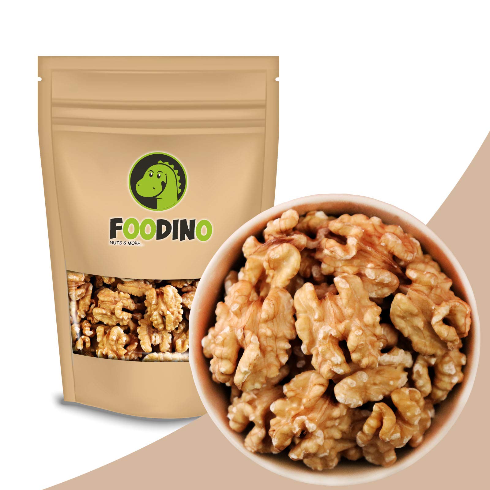 Our quality guarantee Our trading brand Foodino offers you nuts kernels, dried fruit, sugar replacement, superfoods, spices herbs as well as cosmetic raw materials - and all from a single source.We always attach great importance to quality. Walnuts without a bowl - walnut kernels - walnut Our walnuts are: natural without a bowl unwrest untreated from Chile whole walnut kernels A walnut tree becomes up to 25 meters high and can live up to 150 years old.In autumn the walnut tree bears its fruits, which are called walnuts.The walnut cores are located in a soft, green and hard shell. Origin of the walnut The walnut is one of the oldest cultural fruits ever.The walnut originally comes from Persia, and the walnut spread over the Greeks in the Mediterranean.Our walnuts come from Chile. Taste of walnut kernels The walnut kernels taste intensely buttrig-aromatic with a bitter note.The typical taste of the walnut unfolds even better if the nuts are roasted in a pan without fat until the walnut kernels started to smell. Use of walnuts Sweet and hearty cuisine Bread, to the cheese platter, cookies, cake, cereals, pasta dishes, salads or also in meat and vegetable dishes. Delivery We deliver your goods free of charge within a working day after receipt of payment with DHL.All of our products are delivered in the re -lockable standing floor bag. Ingredients ingredients Walnuts Address manufacturer importer Bremer-Nusshandel GmbH, Lüdekingstraße 7, 28217 Bremen Morehandpicked top quality from Foodino.Delivery in the re -lockable standing floor bag.Ideal for baking and snacking.Walnuts from Chile.Walnut kernels walnuts without a bowl whole cores.Unsere Qualitätsgarantie Unsere Handelsmarke Foodino bietet Dir Nüsse Kerne, Trockenfrüchte, Zuckerersatz, Superfoods, Gewürze Kräuter als auch kosmetische Rohstoffe an - und das Alles aus einer Hand. Dabei legen wir stets größten Wert auf Qualität. Walnüsse ohne Schale - Walnusskerne - Walnuss Unsere Walnüsse sind: naturbelassen ohne Schale ungeschwefelt unbehandelt aus Chile ganze Walnusskerne Ein Walnuss Baum wird bis zu 25 Meter hoch und kann bis zu 150 Jahre alt werden. Im Herbst trägt der Walnuss Baum seine Früchte, diese werden Walnüsse genannt. Die Walnusskerne befinden sich in einer weichen, grünen und harten Hülle. Herkunft der Walnuss Die Walnuss ist eine der ältesten Kulturfrüchte überhaupt. Ursprünglich stammt die Walnuss aus Persien, über die Griechen verbreitete sich die Walnuss im Mittelmeerraum. Unsere Walnüsse kommen aus Chile. Geschmack von Walnusskernen Die Walnusskerne schmecken intensiv buttrig-aromatisch mit einer herben Note. Der typische Geschmack der Walnuss entfaltet sich noch besser, wenn die Nüsse in einer Pfanne ohne Fett angeröstet werden, bis die Walnusskerne anfangen zu duften. Verwendung von Walnüssen Süße und herzhafte Küche Brot, zur Käseplatte, Kekse, Kuchen, Müsli, Nudelgerichte, Salate oder auch in Fleisch- und Gemüsegerichten. Lieferung Wir liefern Ihnen kostenlos Ihre Ware innerhalb eines Werktages nach Zahlungseingang mit DHL. Alle unsere Produkte werden im wiederverschließbaren Standbodenbeutel geliefert. INHALTSSTOFFE ZUTATEN Walnüsse ANSCHRIFT HERSTELLER IMPORTEUR Bremer-Nusshandel GmbH, Lüdekingstraße 7, 28217 Bremen MehrHandverlesene Spitzenqualität von FOODINO. Lieferung im wiederverschließbaren Standbodenbeutel. Ideal zum Backen und Snacken. Walnüsse aus Chile. Walnusskerne Walnüsse ohne Schale ganze Kerne.Walnüsse ganz Walnusskerne ohne Schale Walnuss naturbelassen ungesalzen ungeschwefelt 100 Natural 500g - 5kg Walnuss Kerne geschält aus Chile wiederverschließbar Premium Qualität FOODINO (5kg) Ungesalzen 5kg