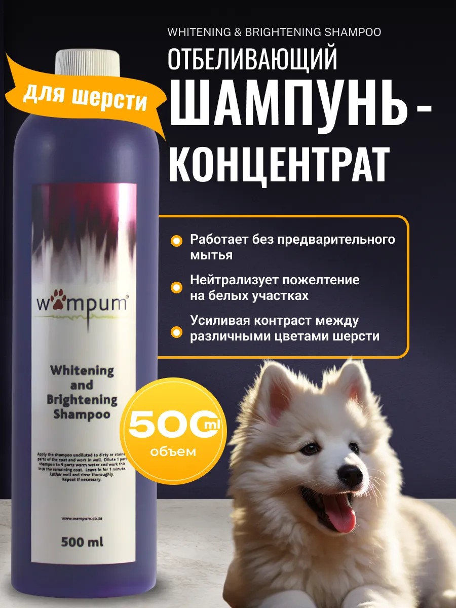 Wampum Grooming Products Отбеливающий шампунь, Whitening&Brightening Shampoo, 500 мл
