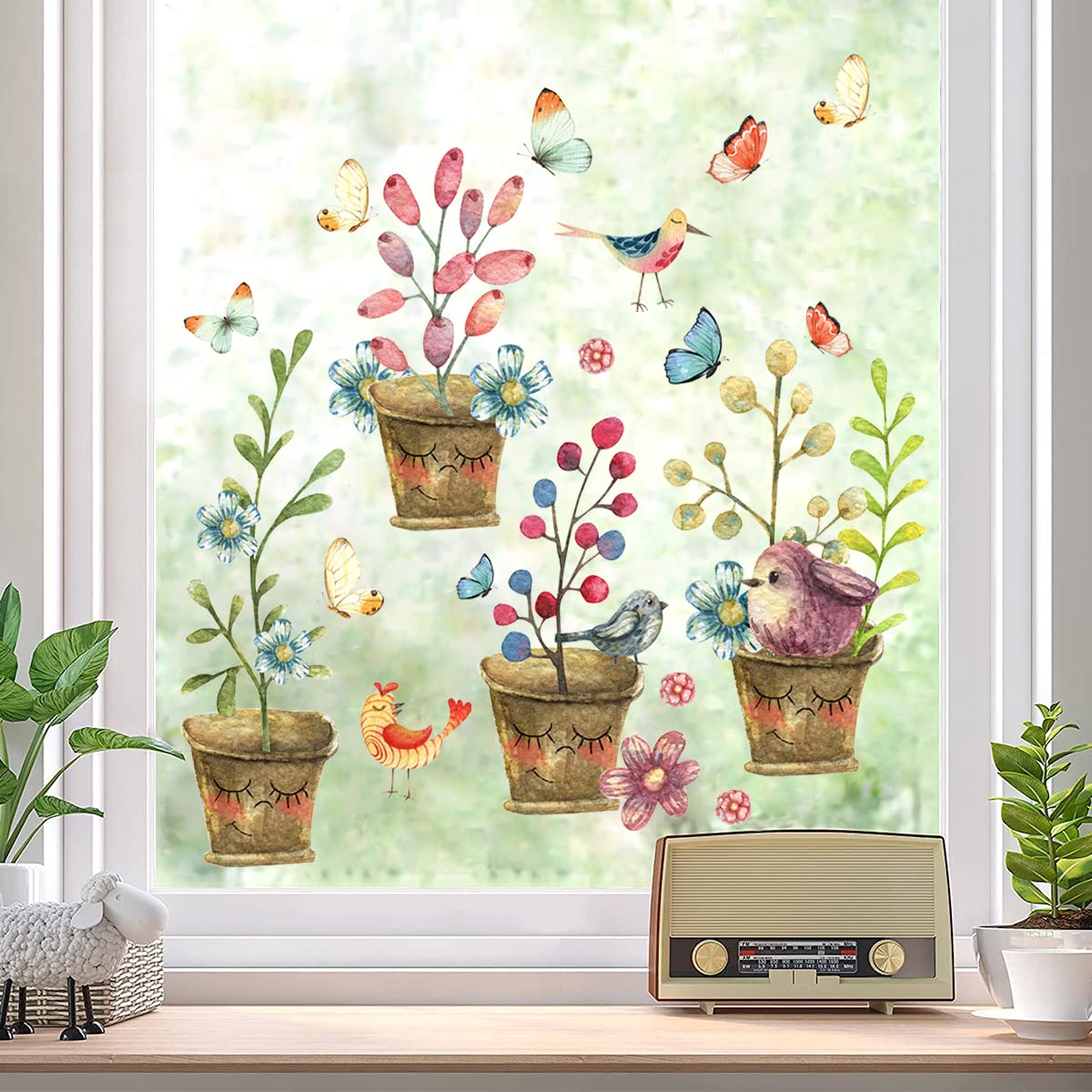 WandSticker4U - Reusable window stickers self-adhesive flower pot vintage I window sticker window sticker flowers plants birds spring living room kitchen bathroom children's room large C. Flower Pot