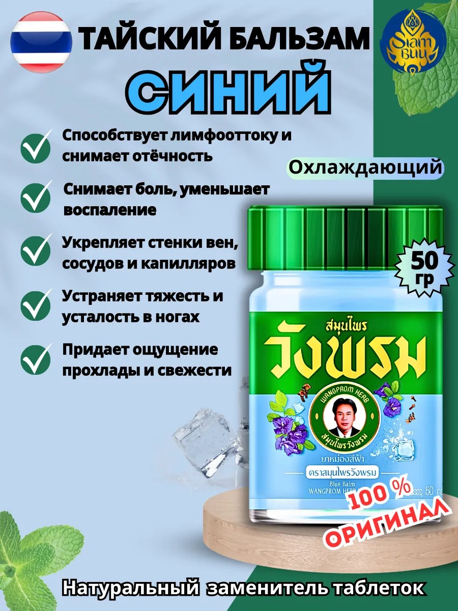 Синий Бальзам Тайский (ХОЛОДНЫЙ) от WANGPROM – невероятно эффективное 100% натуральное традиционное средство на основе целебных тайских трав, которое обладает мягким охлаждающим действием и высокой эффективностью при варикозе (варикозное расширение вен), а также при проблемах с венозным давлением.