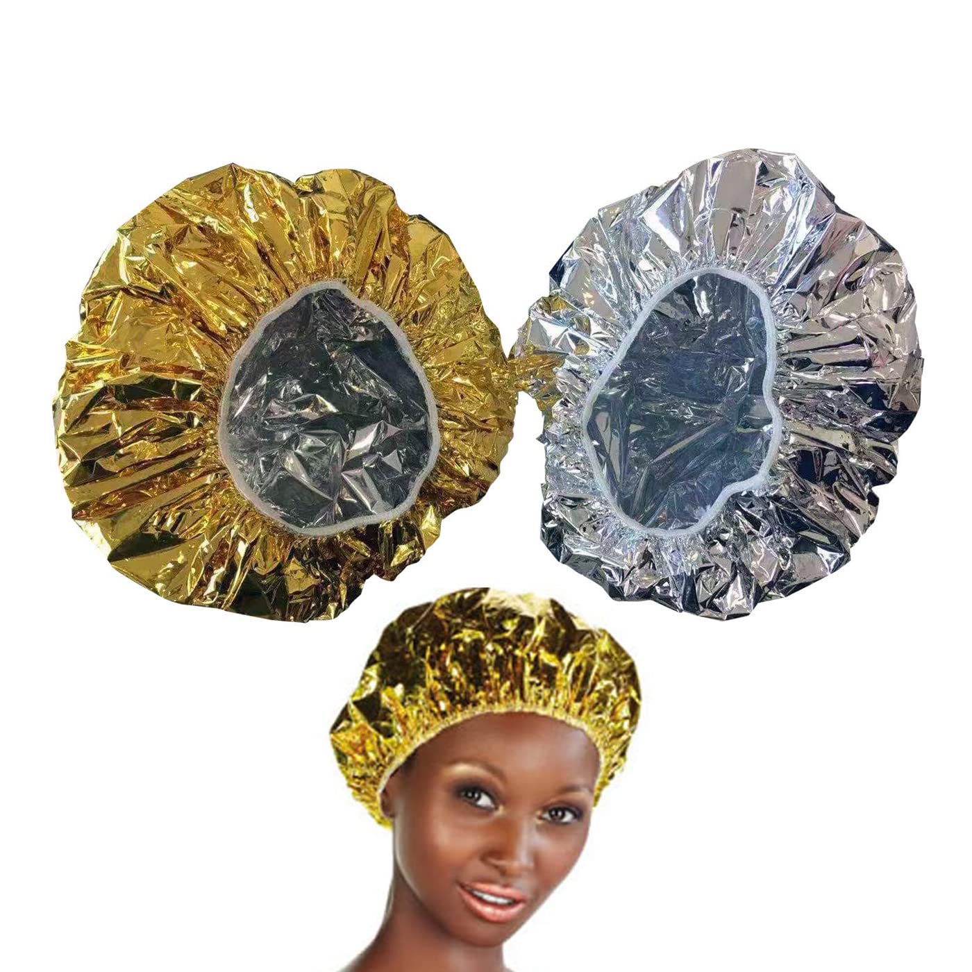Did you split your hair, dry or damagedIt is time to make a mask for your hair. Heated care is more effective because it penetrates the hair shaft more easily and at the same time gives shine and smoothness over the entire length of the hair. The heating cap enables the hair fiber with the nutrients from the oil deeply impregnate.The cap is suitable for short, long, curly, smooth hair. Think about washing the hat after each use.If there is a quality problem, please contact us directly.We would be happy to help you within 24 hours! Warnings Attention: Store outside the range of children.wanxida satisfaction guarantee - 100 satisfied or money back.The hat is easy to clean and can therefore be used again at any time (water Marseille soap, then absorbent paper, as it still remains a bit greasy with all the oil).The two hats ensure successful care for 6 months.Wanxida's heated Beans were developed by professional coifure to store body heat.Thanks to their elastic rubber, they adapt to the different head shapes.The Wanxida hat is suitable for short, long, curly, smooth hair.Heated care is more effective because it penetrates the hair shaft more easily and at the same time gives shine and suppleness over the entire hair length.The heat cap enables the nutrients contained in the oil to integrate deep into the hair fiber.Is your hair split, dry or damagedIt is time to make a mask for your hair.Improve your care with a warming hat.Wanxida.Haben Sie Ihr Haar gespalten, trocken oder beschädigtEs ist an der Zeit, eine Maske für Ihr Haar zu machen. Eine beheizte Pflege ist effektiver, da sie leichter in den Haarschaft eindringt und gleichzeitig Glanz und Geschmeidigkeit über die gesamte Länge des Haares verleiht. Die Heizkappe ermöglicht es, die Haarfaser mit den Nährstoffen aus dem Öl tief zu imprägnieren. Die Kappe ist geeignet für kurzes, langes, lockiges, glattes Haar. Denken Sie daran, die Mütze nach jedem Gebrauch zu waschen. Wenn es ein Qualitätsproblem gibt, kontaktieren Sie uns bitte direkt. Wir helfen Ihnen gerne innerhalb von 24 Stunden! WARNHINWEISE Achtung: Außerhalb der Reichweite von Kindern aufbewahren.Wanxida Zufriedenheitsgarantie – 100 zufrieden oder Geld zurück. Die Mütze ist leicht zu reinigen und kann daher jederzeit wieder verwendet werden (Wasser Marseille-Seife, dann saugfähiges Papier, da es mit all dem Öl immer noch etwas fettig bleibt). Die zwei Mützen sorgen für eine erfolgreiche Pflege für 6 Monate. Die beheizten Beanies von Wanxida wurden von professionellen Coifure entwickelt, um die Körperwärme zu speichern. Dank ihres elastischen Gummis passen sie sich den verschiedenen Kopfformen an. Die Wanxida Mütze ist geeignet für kurzes, langes, lockiges, glattes Haar. Eine beheizte Pflege ist effektiver, da sie leichter in den Haarschaft eindringt und gleichzeitig Glanz und Geschmeidigkeit über die gesamte Haarlänge verleiht. Die Wärmekappe ermöglicht es, die im Öl enthaltenen Nährstoffe tief in die Haarfaser zu integrieren. Ist Ihr Haar gespalten, trocken oder beschädigtEs ist an der Zeit, eine Maske für Ihr Haar zu machen. Verbessern Sie Ihre Pflege mit einer wärmenden Mütze. Wanxida.Wanxida 4 Stücke Aluminium Wärmekappe für haare Thermische Salonhaarkappe Pflegende Wasserdichte Trockene Badekappe Gold Silber