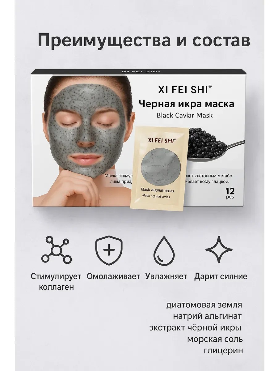 | Composition | Sodium Alginate; Alginic Acid; Diatomaceous Earth; Black Caviar Extract; Sea Salt |