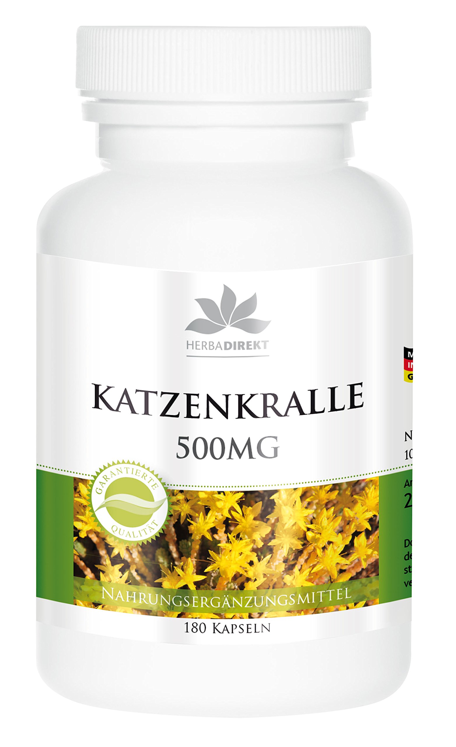 " Cat's Claw 500mg 180 capsules Una De Gato Net quantity: 180 capsules Instructions for use: Adults take 2 capsules daily with a meal with plenty of water. Note: Not suitable for pregnant and breastfeeding women. One capsule contains: 500mg cat's claw powder " INGREDIENTS Cat's claw powder (Uña De Gato), coating agent hydroxypropyl methylcellulose (capsule shell), solvent magnesium salts from fatty acids SAFETY WARNING Do not exceed the recommended daily dosage. Nutritional supplements are not a substitute for a balanced and varied meal and a healthy lifestyle. Keep out of reach of small children. Not suitable for pregnant and breastfeeding women. MANUFACTURER CONTACT INFORMATION Warnke Vitalstoffe GmbH, Postfach 29 42, D-35539 Wetzlar, www.warnke.de See moreMoney Back Guarantee for Merchant Shipping Orders: We want to please our customers! We give you our warranty even 24 months after your purchase. Quality and customer friendliness: Our products meet the HACCP quality standards. Manufactured in Germany. Raw materials from EU and non-EU countries. The optimized packaging with a sealed dosing lid ensures a long shelf life of your nutritional supplements and easy dosing. Recommended dosage: see photo label. Ingredients: Cat's claw powder (Uña De Gato), coating agent hydroxypropyl methylcellulose (capsule shell), solvent magnesium salts from fatty acids. Excellent value for money for German quality - Cat's Claw Capsules 500mg - Uña De Gato - Cat's Claw - 180 Capsules - vegan.Kattenklauwcapsules 500mg - Uña De Gato - Kattenklauw - 180 Capsules - veganistisch HERBADIREKT by Warnke Vitalstoffe - Duitse apothekerskwalitei " Cat's Claw 500mg 180 capsules Una De Gato Netto hoeveelheid: 180 capsules Gebruiksaanwijzing: Volwassenen nemen dagelijks 2 capsules bij de maaltijd met veel water in. Opmerking: Niet geschikt voor zwangere vrouwen en vrouwen die borstvoeding geven. Eén capsule bevat: 500mg cat's claw poeder " INGREDIËNTEN Kattenklauwpoeder (Uña De Gato), coatingmiddel hydroxypropylmethylcellulose (capsule-omhulsel), oplosmiddel magnesiumzouten uit vetzuren VEILIGHEIDSWAARSCHUWING De dagelijkse aanbevolen dosering niet overschrijden. Voedingssupplementen zijn geen vervanging voor een evenwichtige en gevarieerde maaltijd en een gezonde leefwijze. Buiten bereik van kleine kinderen houden. Niet geschikt voor zwangere vrouwen en vrouwen die borstvoeding geven. CONTACTINFORMATIE FABRIKANT Warnke Vitalstoffe GmbH, Postfach 29 42, D-35539 Wetzlar, www.warnke.de Meer bekijkenGeld terug garantie voor bestellingen met verzending door handelaars: Wij willen onze klanten tevreden stellen! Zelfs 24 maanden na uw aankoop geven wij u onze garantie. Kwaliteit en klantvriendelijkheid: Onze producten voldoen aan de HACCP-kwaliteitsnormen. Vervaardigd in Duitsland. Grondstoffen uit EU- en niet-EU-landen. De geoptimaliseerde verpakking met een verzegeld doseerdeksel zorgt voor een lange houdbaarheid van uw voedingssupplementen en de eenvoudige dosering ervan. Aanbevolen dosering: zie foto label. Ingrediënten: Kattenklauwpoeder (Uña De Gato), coatingmiddel hydroxypropylmethylcellulose (capsule-omhulsel), oplosmiddel magnesiumzouten uit vetzuren. Uitstekende prijs-kwaliteitverhouding voor Duitse kwaliteit - Kattenklauwcapsules 500mg - Uña De Gato - Kattenklauw - 180 Capsules - veganistisch.