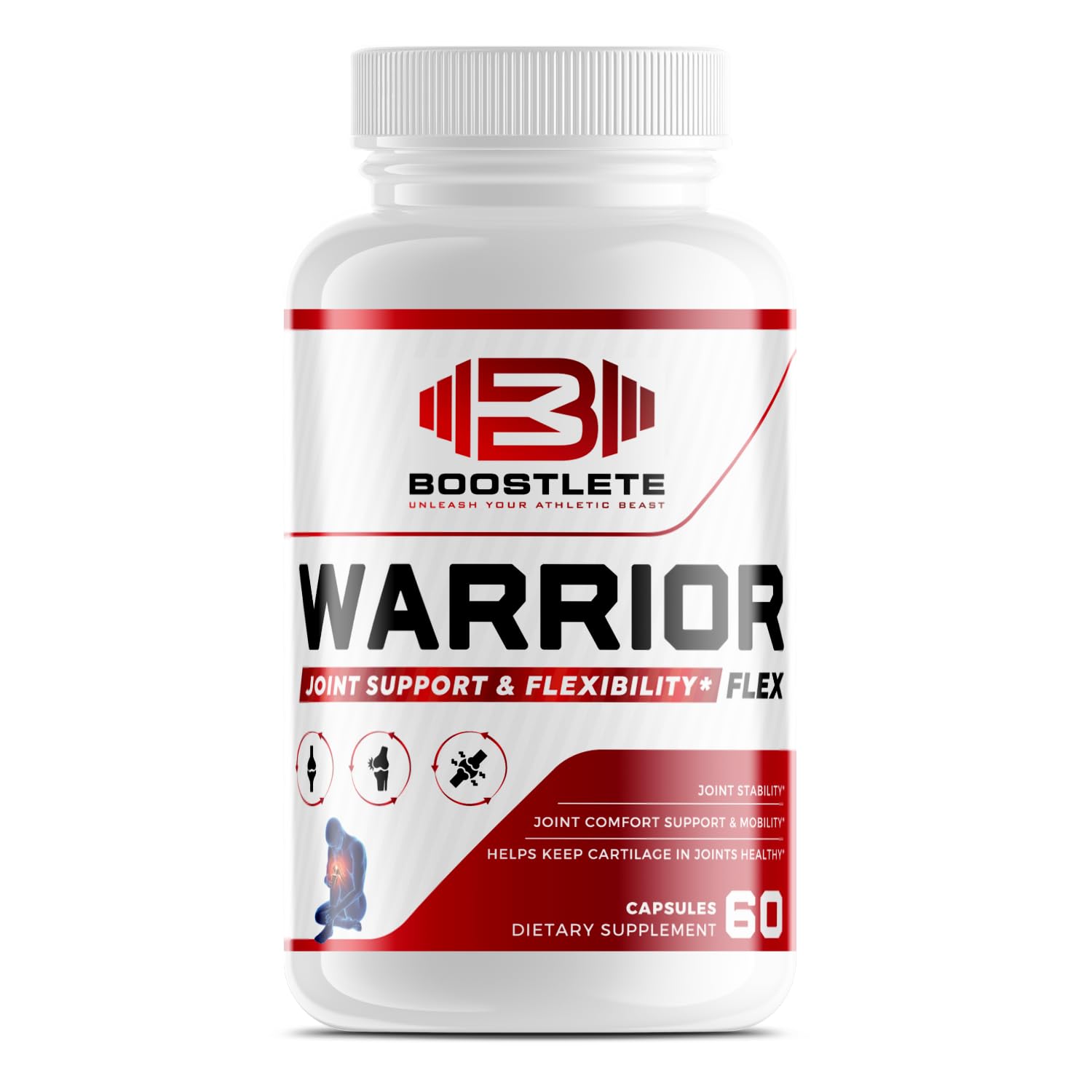 Warrior Flex is expertly formulated to help support your joint health, mobility, and flexibility. Crafted with Glucosamine, Chondroitin, Turmeric, Boswellia, Quercetin, and Bromelain, this premium blend aids in maintaining cartilage integrity, reducing stiffness, and supporting a healthy inflammatory response. Whether you're an athlete, fitness enthusiast, or simply looking to maintain an active lifestyle, Warrior Flex is your trusted partner in joint care. Key Features: Supports Joint Health Mobility: Maintains healthy cartilage, enhances flexibility, and improves mobility. Reduces Joint Discomfort: Chondroitin and Boswellia help ease joint stiffness and discomfort. Promotes Healthy Inflammation Response: Turmeric and Quercetin provide natural antioxidant support. Formulated for Active Lifestyles: Ideal for athletes, fitness lovers, and active adults seeking enhanced joint support. Pure Trusted Quality: Proudly made in the USA in an FDA-registered, GMP-certified facility. Third-party tested for purity and potency. Premium Ingredients: Glucosamine Chondroitin: Promote healthy cartilage and joint lubrication. Boswellia Turmeric: Help reduce discomfort by supporting a healthy inflammatory response. Quercetin Bromelain: Antioxidant-rich blend aiding muscle recovery and reducing soreness. Ginger Methionine: Enhance joint flexibility and overall wellness. Suggested Use:Take three (3) capsules daily with a meal. For enhanced benefits, take six (6) capsules daily for the first two weeks as a loading dose. Why Choose Warrior Flex?✓ Non-GMO Gluten-Free✓ No Artificial Fillers or Additives✓ Lab-Tested for Quality Purity✓ Made in the USA Package Information: Serving Size: 3 Capsules Servings Per Container: 20 Bottle Color: White Bottle Size: 175cc Lid Color: White These statements have not been evaluated by the Food and Drug Administration. This product is not intended to diagnose, treat, cure or prevent any disease.Pure Trusted Quality: Proudly made in the USA in an FDA-registered, GMP-certified facility. Third-party tested for purity and potency. Formulated for Active Lifestyles: Ideal for athletes, fitness lovers, and active adults seeking enhanced joint support. Promotes Healthy Inflammation Response: Turmeric and Quercetin provide natural antioxidant support. Reduces Joint Discomfort: Chondroitin and Boswellia help ease joint stiffness and discomfort. Supports Joint Health Mobility: Maintains healthy cartilage, enhances flexibility, and improves mobility.