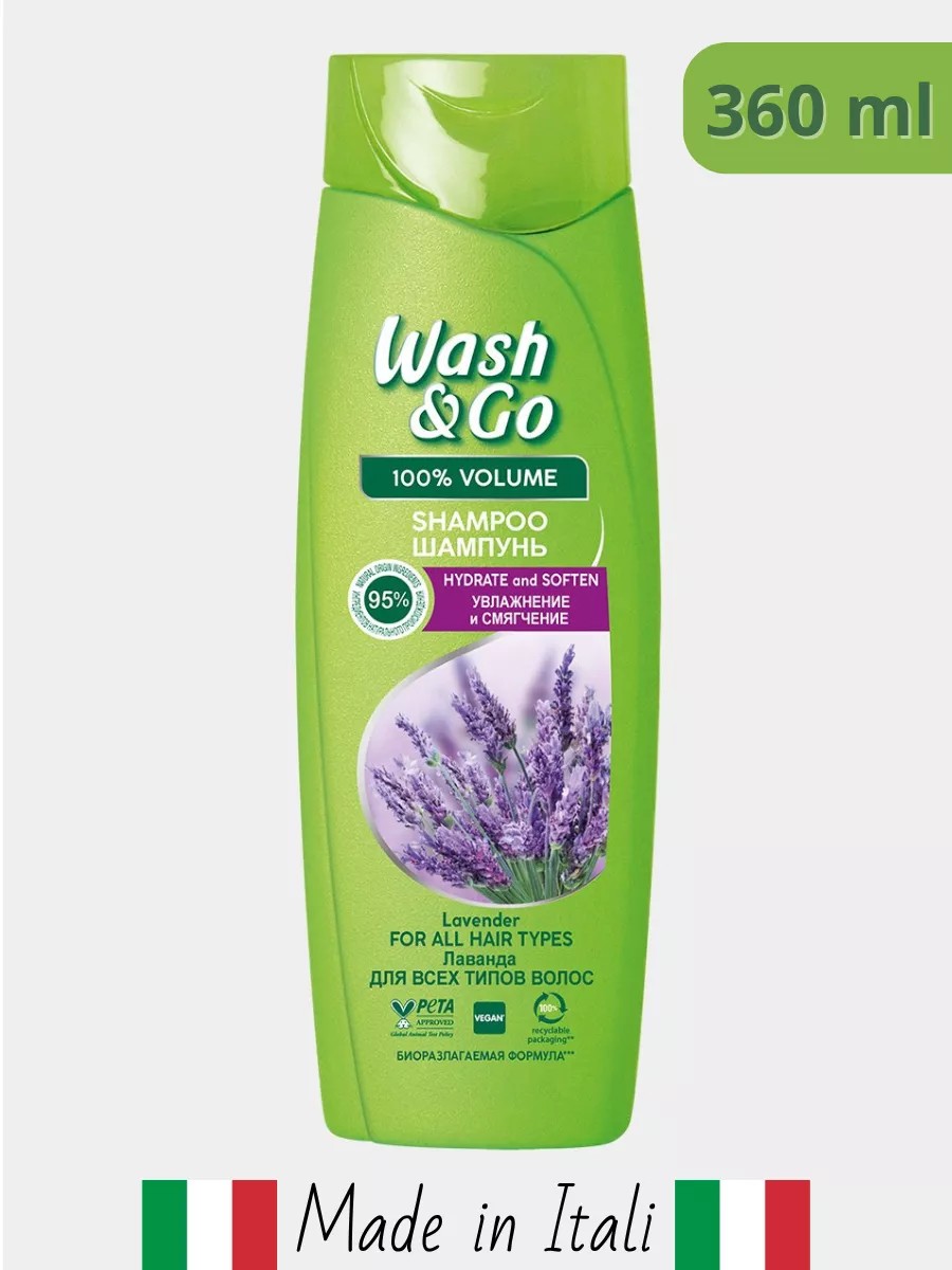 Натуральный шампунь для всех типов волос с экстрактом лаванды Wash & Go – это идеальное средство для ежедневного ухода за волосами как для мужчин, так и для женщин. Итальянский шампунь 2в1, благодаря формуле с бальзамом, даёт мгновенный результат, позволяя высвободить больше времени и энергии на новые свершения. Мгновенный 100% объем. 95% натуральных ингредиентов. Wash&Go – больше времени для любимых дел! Как шампунь для поврежденных волос, Wash & Go Лаванда помогает восстановить и укрепить волосы, делая их густыми и здоровыми. Лаванда смягчает волосы, делая их живыми и объёмными. Аромат лаванды дарит успокаивающий эффект. Идеально подходит для тонких, повреждённых и нормальных волос, для укрепления и питания. Если вы хотите подарить своим волосам эксклюзивный уход, наш восстанавливающий шампунь с экстрактом Лаванды – то, что вам нужно. Вы оцените его разглаживающий эффект и укрепляющие свойства. Органическая формула поможет вам ухаживать за кожей головы и добиться её глубокой очистки. Шампунь Вош энд го - это целый комплекс ухода. Попробуйте, и вы почувствуете нашу заботу о вашей красоте. Большой объем 360 мл хватит надолго. 95% натуральный состав. Благодаря современной формуле, Wash and Go ЛАВАНДА бережно ухаживает, придавая волосам прекрасный внешний вид, жизненный блеск и яркость. Можно использовать как для неокрашенных, так и для окрашенных волос для сохранения яркости. Многие годы формула W&G постоянно совершенствуется – появляются новые комбинации ингредиентов для максимального результата с минимумом затрачиваемых усилий. Способ применения шампуня: 1. Смочите голову теплой водой у корней и по длине. 2. Нанесите необходимое количество средства на ладони. 3. Вспеньте и нанесите на кожу головы, избегая попадания на длину, чтобы не пересушить волосы по длине. 4. Массажными движениями распределите часть пены от шампуня по коже головы. 5. Смывать теплой водой, распределяя пену по длине. Wash & Go – только качественные товары итальянского производства!