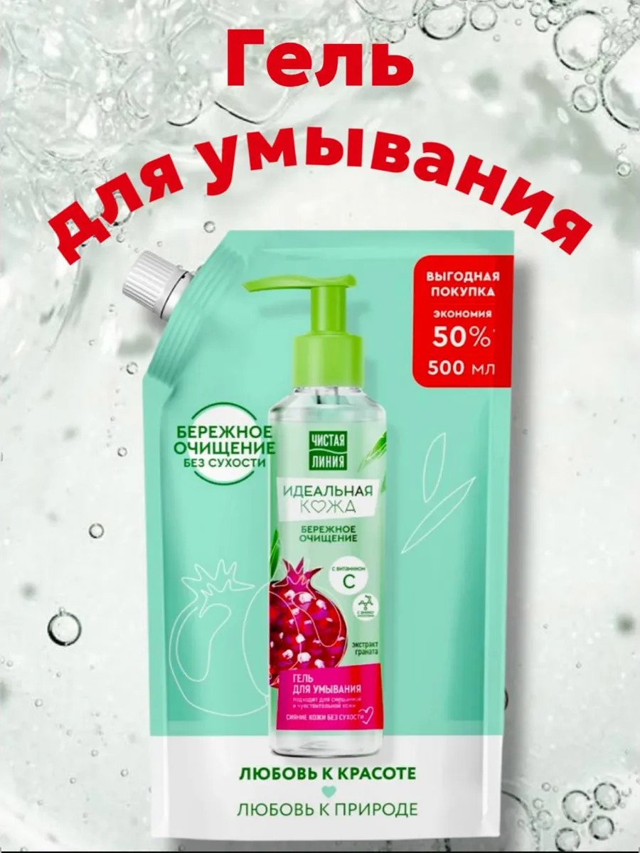 Гель для умывания Идеальная кожа Чистая Линия теперь представлен в экономичном формате дойпак. А это значит, что покупка стала выгоднее на 40%'. Гель имеет родственный коже рН, бережно и качественно очищает, не оставляя ощущения сухости и стянутости. Сбалансированный состав и нежная легкая текстура идеально подходят для очищения и ухода за молодой кожей:• Витамин С делает цвет лица здоровым и сияющим, обеспечивает антиоксидантную защиту кожи и препятствует ее преждевременному старению.• Аминокислоты укрепляют естественный защитный барьер кожи, восстанавливают водный баланс, участвуют в синтезе коллагена и эластина.• Экстракт граната заряжает энергией антиоксидантов, контролирует неблагоприятное воздействие окружающей среды.Гель для умывания отлично подходит для смешанной и чувствительной кожи. Сразу после умывания ты почувствуешь, что кожа чистая, сияющая и мягкая. Подходит для ежедневного применения утром и вечером.Для наилучшего эффекта воспользуйся также другими продуктами серии Идеальная кожа. Сразу после умывания нанеси тоник Идеальная кожа для всех типов кожи, далее – крем-гель Идеальная кожа для всех типов кожи. Благодаря ежедневному уходу с продуктами серии Идеальная кожа ты получишь свежий и отдохнувший цвет лица, увлажненную и гладкую кожу. Ухаживай за своей кожей и сияй естественной красотой!Эксперты бренда Чистая Линия используют передовые технологии, накопленный опыт и тщательно отбирают ингредиенты, чтобы предложить действительно качественный продукт по доступной цене. Одобрено дерматологами. Не тестируется на животных.
