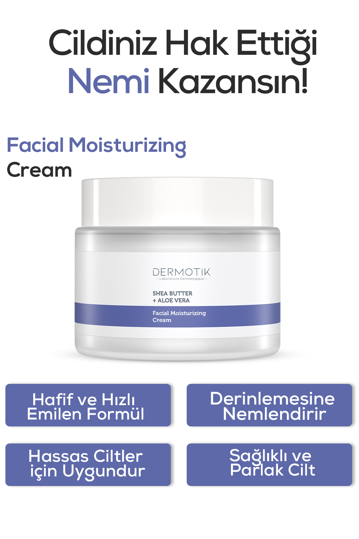Cildinizin ihtiyaç duydugu yogun nemi yagli bir his birakmadan saglayan, hafif formüllü bir yüz nemlendirici!Shea ButterveAloe Veraile zenginlestirilmis bu su bazli krem, kuru ve hassas ciltlere özel olarak gelistirilmistir.
