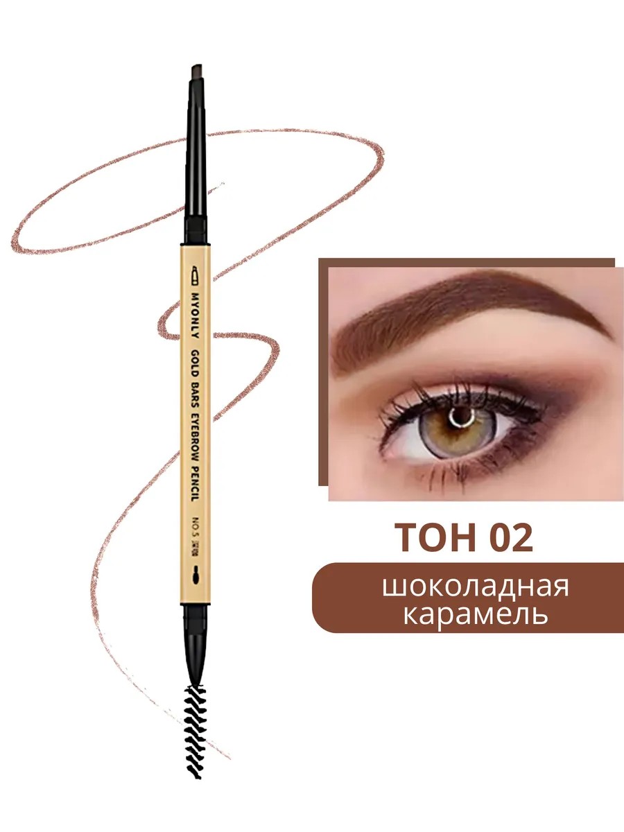 The Waterbeline automatic eyebrow pencil is designed for a luxurious look. This long-lasting cosmetic eyebrow pencil with a thin rod and a comb-like brush will help you achieve the perfect arch and definition. On one end of the Waterbeline eyebrow pencil is a thin rod that is convenient for correcting the shape of brows, making them saturated and filling in the gaps between hairs. On the other end is a brush for combing brows and blending the color. The texture applies smoothly, does not irritate the skin, does not smudge, and does not fade. The collection includes pencils in several shades: from graphite, gray, to brown. How to use: To achieve the effect of natural brows, draw short lines in the direction of hair growth from the bridge of the nose to the temples. Do not press too hard. Finally, comb the brows and blend the color with the brush.