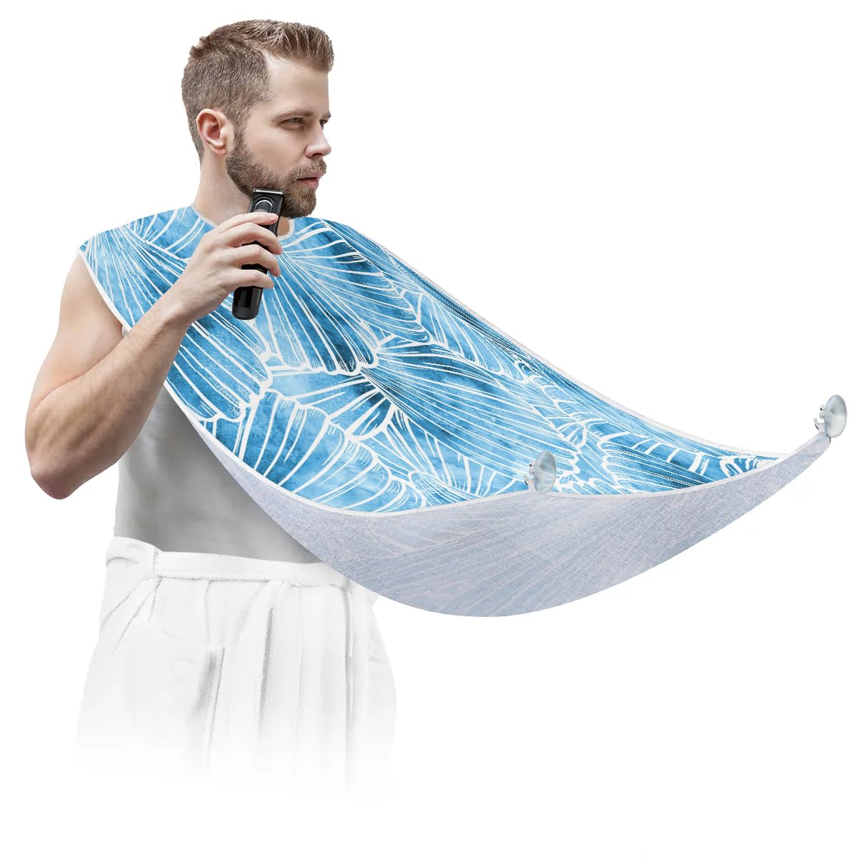 Introducing our high quality Watercolor Seashells beard bib, meticulously designed for both functionality and style. This beard cape is specifically designed to capture all loose beard hair, sideburns, and trimmer debris, simplifying cleanup and keeping your sink spotless. Saving you time and effort, it offers practicality without compromising elegance. To use, simply secure the bib around your neck with the adjustable strap and attach to your mirror. When your grooming routine is complete, effortlessly remove the beard bib from the suction cups and brush the collected hair into the trash can for easy cleaning. Constructed of lightweight polyester fabric, our beard bib is of the highest quality. It has a non-stick surface, is waterproof, and is resistant to static electricity, allowing you to easily remove hair from the bib. The bib comes with two high quality suction hooks that provide strong suction without leaving marks on your mirror or tiles. For optimal comfort, the beard bib has an adjustable shoulder strap that can be comfortably secured around your neck, ensuring a perfect fit for everyone. It is easy to put on and take off, making it a convenient accessory for any man's grooming routine. Our beard bib makes an ideal gift for men, fathers, boyfriends, brothers and husbands on special occasions such as Father's Day, Anniversaries, Valentine's Day, Christmas and birthdays. Not only does it make shaving more convenient, but it also enhances the overall grooming experience for them. Whether you're looking for a practical solution to keeping your bathroom sink clean or a stylish addition to your daily grooming routine, our beard bib is the perfect choice. Order today and enjoy an uncluttered and mess-free shaving experience!?Ideal Gift?: Our men's beard bib is an excellent choice for a thoughtful gift. It's perfect for men, fathers, boyfriends, brothers and husbands on special occasions such as Father's Day, anniversaries, Valentine's Day, Christmas and birthdays. This handy accessory not only adds convenience to men's shaving routines, but also enhances their overall grooming experience. It's a thoughtful gift that shows you care about their comfort and grooming habits. ?Comfortable and Adjustable?: Our beard trimmer catcher is designed for optimal comfort and versatility. It features an adjustable shoulder strap that can be easily fastened around your neck, ensuring a perfect fit for individuals of all sizes. The strap provides a secure and comfortable hold during grooming sessions. In addition, the beard trimmer catcher is easy to attach and remove, making it a convenient accessory for any man's grooming routine. ?Quality Material?: Our beard apron is made of premium, lightweight polyester