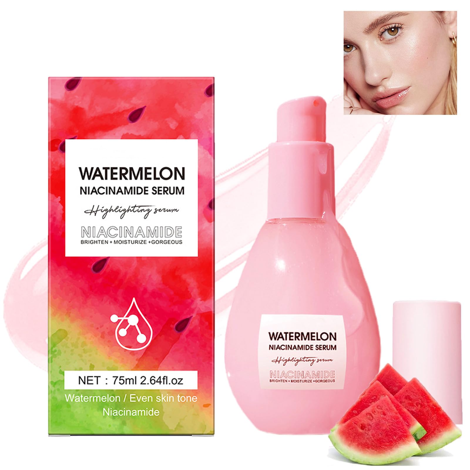 ?? Description: 1. Enriched with niacinamide essence, it can effectively lighten the skin and simply create a radiant complexion. 2. This moisturizing watermelon essence contains 90 % watermelon extract to nourish the skin and add its moisture so that you get moist and shiny skin. 3. Moisturizing cream texture, light, not sticky and quickly moves in. 4. Natural, soothing plant essences, healthy, mild, free of animal experiments, suitable for all skin types. 5. The antioxidants in watermelon extract can resist environmental stress, reduce UV damage on the skin and prevent the occurrence of fine lines and dark stains. 6. Hyaluronic acid helps to increase moisture, reduce redness and give the skin a smooth, soft appearance. 7. Usable several times, it can be used as a facial essence to maintain and brighten the skin and can also be mixed with other make-up products. ?? Specifications: ? Applicable people: General ? Suitable skin type: all skin types ? Net content: 60 ml (1.35 fl oz) ? Effectiveness: moisturizing, brightening skin tone ? Durability: 3 years Use: 1. Before using the moisturizer 1-2 pumping pumps, press the essence for daily use and gently dab on the face and neck until it is fully pulled in.(Apply every morning and afternoon) 2. Use 1–2 pump bumps in the last step of your pre-make-up skin care routine. 3. Can also be mixed with the primer for a moisturizing effect. 4. As the last step of your skin care routine, you as a skin care highlighters apply it to the highest areas of your face. ?? package includes: 1PCS* watermelon niacinamide serum ? ?Several occasions? Easy cream texture, easy to use, perfect for make-up in every season, moisturizing before make-up, suitable for offices, appointments, purchases, meetings, parties, halloween andOther occasions.Beautifully packaged and perfect as a Christmas present for a friend or a mother, wife or girlfriend.? ?Easy and free of animal testing? This watermelon niacinamide essence uses a natural, mild and healthy formula.It has a moisturizing and light texture.It can be mixed or used in combination.It quickly moves in, is pleasant to use and does not irritate the skin.It is very well suited for sensitive skin and can immediately make the skin shine with moisture.??Niacinamide Glow Serum? This serum is enriched with niacinamide essence, which contributes to lightening blunt skin, compensating for the skin tone, nourishing the skin, reducing the skin, and radiating the inner moisture and the shine of the skin, which means that in a simple mannerA radiant, bright complexion is created.? ?Watermelon moisturizer? This watermelon moisture cream is made from a variety of natural plant formulas and is 90 % rich in watermelon extract.The watermelon extract contains amino acids, vitamin C and other nurses and moisturizing ingredients.It can quickly penetrate the skin, donate moisture effectively and quickly relieve dry skin, supply the skin with moisture and make it look new.? ?Skin care and make-up products? The moist and light texture can be used as moisturizer before make-up and can also be mixed with other make-up products such as liquid primer, contouring, eyeshadow, scope, etc.Mix with liquid The foundation donates moisture and makes it more smooth.This face serum, enriched with niacinamide, immediately gives the skin a baptismal shine and lightly brightens it. ?? Beschreibung: 1. Angereichert mit Niacinamid-Essenz kann es die Haut effektiv aufhellen und ganz einfach einen strahlenden Teint erzeugen. 2. Diese feuchtigkeitsspendende Wassermelonen-Essenz enthält 90 % Wassermelonenextrakt, um die Haut zu nähren und ihr Feuchtigkeit zuzuführen, sodass Sie eine feuchte und glänzende Haut erhalten. 3. Feuchtigkeitsspendende Cremetextur, leicht, nicht klebrig und zieht schnell ein. 4. Natürliche, wohltuende Pflanzenessenzen, gesund, mild, tierversuchsfrei, für alle Hauttypen geeignet. 5. Die Antioxidantien im Wassermelonenextrakt können Umweltstress widerstehen, UV-Schäden auf der Haut reduzieren und das Auftreten von feinen Linien und dunklen Flecken verhindern. 6. Hyaluronsäure trägt dazu bei, die Feuchtigkeit zu erhöhen, Rötungen zu reduzieren und der Haut ein glattes, weiches Aussehen zu verleihen. 7. Mehrfach verwendbar, kann es als Gesichtsessenz zur Pflege und Aufhellung der Haut verwendet werden und kann auch mit anderen Make-up-Produkten gemischt werden. ?? Spezifikationen: ?Anwendbare Personen: Allgemein ?Geeigneter Hauttyp: alle Hauttypen ?Nettoinhalt: 60 ml (1,35 fl oz) ?Wirksamkeit: Feuchtigkeitsspendender, aufhellender Hautton ?Haltbarkeit: 3 Jahre Verwendung: 1. Drücken Sie vor der Anwendung der Feuchtigkeitscreme 1-2 Pumpstöße der Essenz für den täglichen Gebrauch aus und tupfen Sie sanft auf Gesicht und Hals, bis sie vollständig eingezogen ist. (Jeden Morgen und Nachmittag anwenden) 2. Als Grundierung 1–2 Pumpstöße im letzten Schritt Ihrer Pre-Make-up-Hautpflegeroutine verwenden. 3. Kann für eine feuchtigkeitsspendende Wirkung auch mit der Grundierung gemischt werden. 4. Als letzten Schritt Ihrer Hautpflegeroutine tragen Sie es als Hautpflege-Highlighter auf die höchsten Stellen Ihres Gesichts auf. ??Paket beinhaltet: 1PCS* Wassermelonen-Niacinamid-Serum??Mehrere Anlässe?Leichte Cremetextur, einfach anzuwenden, perfekt für Make-up zu jeder Jahreszeit, feuchtigkeitsspendend vor dem Make-up, geeignet für Büros, Verabredungen, Einkäufe, Versammlungen, Partys, Halloween und andere Anlässe. Wunderschön verpackt und perfekt als Weihnachtsgeschenk für einen Freund oder eine Mutter, Ehefrau oder Freundin. ??Leicht und tierversuchsfrei?Diese Wassermelonen-Niacinamid-Essenz verwendet eine natürliche, milde und gesunde Formel. Es hat eine feuchtigkeitsspendende und leichte Textur. Es kann gemischt oder in Kombination verwendet werden. Es zieht schnell ein, ist angenehm in der Anwendung und reizt die Haut nicht. Es ist sehr gut für empfindliche Haut geeignet und kann die Haut sofort mit Feuchtigkeit zum S