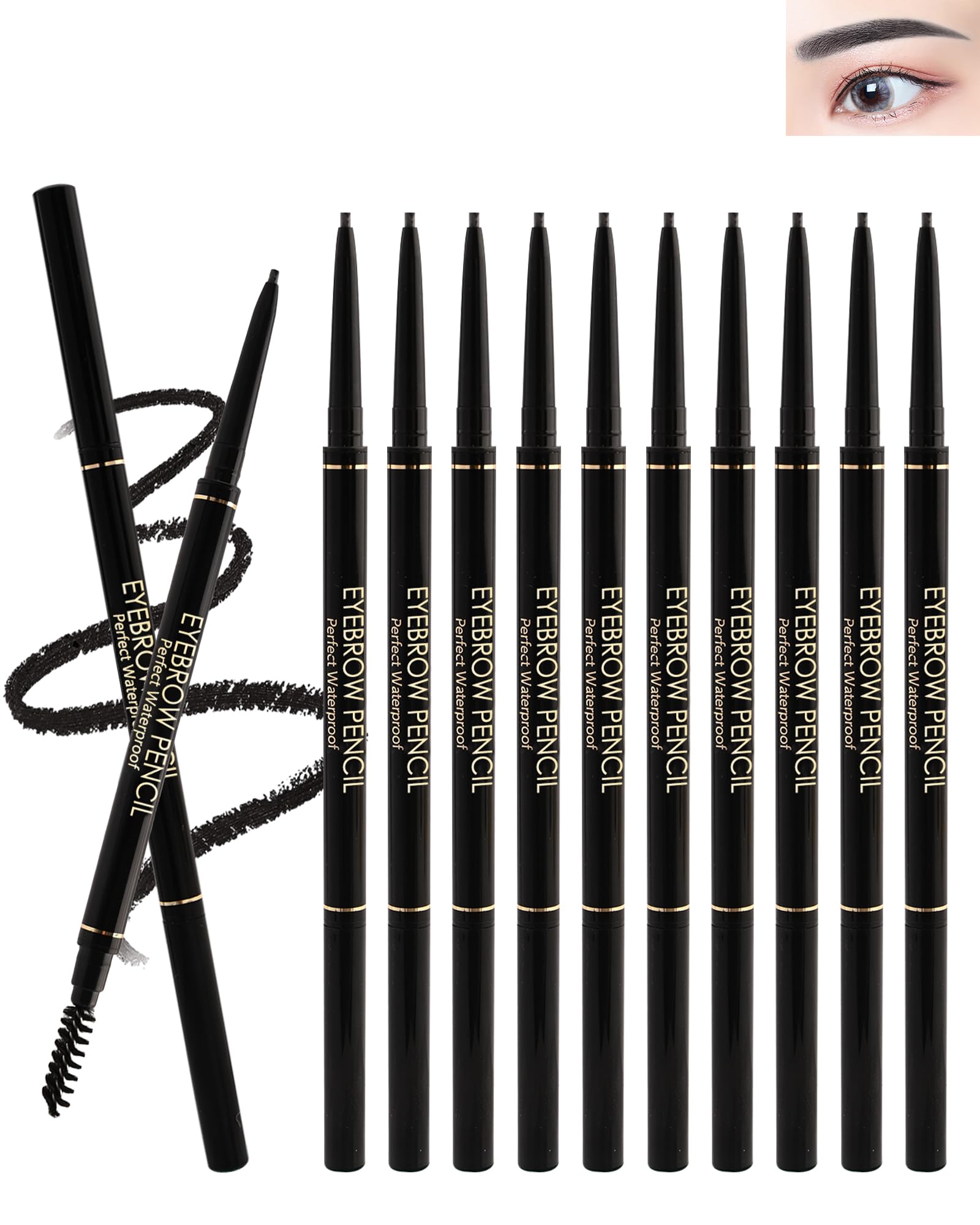 ULTRA - FINE PRECISION - Features a precise and ultra-fine, retractable 1.5mm micro skinny brow pencil,you can draws extra fine lines and easily create the look of natural brow hairs and shape, delineate, and complete sparse or over-plucked eyebrows. Perfect for creating both natural everyday brows and dramatic evening looks. Suitable for all brow shapes and types. RETRACTABLE & EASY TO USE - This retractable eyebrow pencil can be rotated out to the proper length, and to prevent accidental breakage, it is best to use it with the tip protruding less than 0.2 mm. It applies smoothly and conveniently. Ideal for makeup beginners and professionals. It is very easy to use, simply twist up the pencil slightly until the tip reaches the tip, draw small strokes and then use the brush on the other end to comb through your eyebrows and fill in sparse areas and gaps. WATERPROOF & LONG LASTING FORMULA - Long-lasting water-resistant polymers in the formula form a waterproof film that is highly resistant to water, sweat and oil. It won't smudge, smear or fade all day long. Perfect for busy lifestyles where you don't need to touch up or reapply. It's also great for beach days, when you're sweating, swimming or showering and you don't need to worry about the color smudging or fading. Keeps your brows in place even in hot and humid conditions. SPECIAL DOUBLE-HEADED DESIGN - Fill in and sculpt your brows to perfection with this must-have professional fine brow pencil (with brush)! The microfine tip traces an ultra-fine brow line, enhancing and outlining the natural shape of the brow for a more defined and accurate look. And the included brow spoolie brush shapes and blends brows, allowing you to effortlessly smudge them for soft, natural-looking brows. So you can say goodbye to jagged, thick eyebrows. 12 PCS EYEBROW PENCIL SET - Our eyebrow pencil offering a spectrum of warm and cool tones, this brow pencil matches diverse skin tones and hair colors. It comes in 5 popular colors: Black, Light Brown, Brown, Gray, Dark Brown. This eyebrow set include 12pc the same color eye brow pencils. It allows you to effortlessly create a natural, three-dimensional brow shape. Gives you more freedom to draw the dreamy eyebrows you want.
