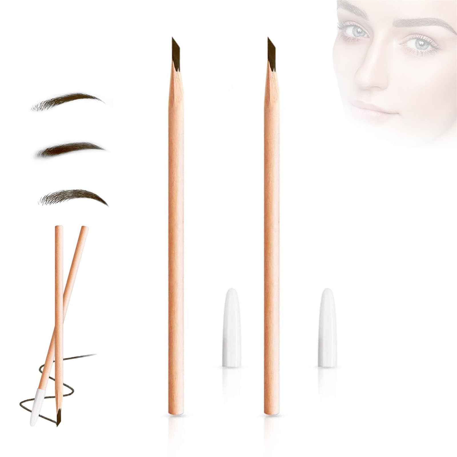 Waterproof wooden eyebrow pencil, non-smudging eyebrow pencil, wooden machete eyebrow pencil, waterproof non-smudging eyebrow pencil long lasting brow Specification: Material: Wood Color: Black, Brown Length: 19.8 cm 7.8 in Net Weight: 6.3 g Package Included: 2 Pcs Waterproof Wooden Eyebrow Pencil Note: 1. Due to the light difference, the color may be slightly different 2. Please allow slight differences due to manual measurementLong-Lasting Wear: Our waterproof non-smudging eyebrow pencil long lasting brow is perfect for all-day wear, providing a flawless look that lasts from morning until night. Easy to Remove: Non smudging eyebrow pencil although it is waterproof, it is easy to remove with makeup remover, without leaving any pigment residue. Easy to Use: Our wooden machete eyebrow pencil provides effortless application, allowing you to achieve the perfect brow shape in minutes. Its unique design allows you to draw the contour of the eyebrow and continues to fill along the eyebrow shape to create three-dimensional and natural eyebrows. Waterproof and Smudge-proof: Our wooden eyebrow pencil ensures long-lasting wear and can withstand moisture and sweat without smudging or fading. Easy for beginners to use. making your eyes stand out. Waterproof Wooden Eyebrow Pencil: This Waterproof Wooden Eyebrow Pencil is the perfect tool for creating well-defined eyebrows. It allows everyone to draw beautiful, natural-looking eyebrows that will last all day long.