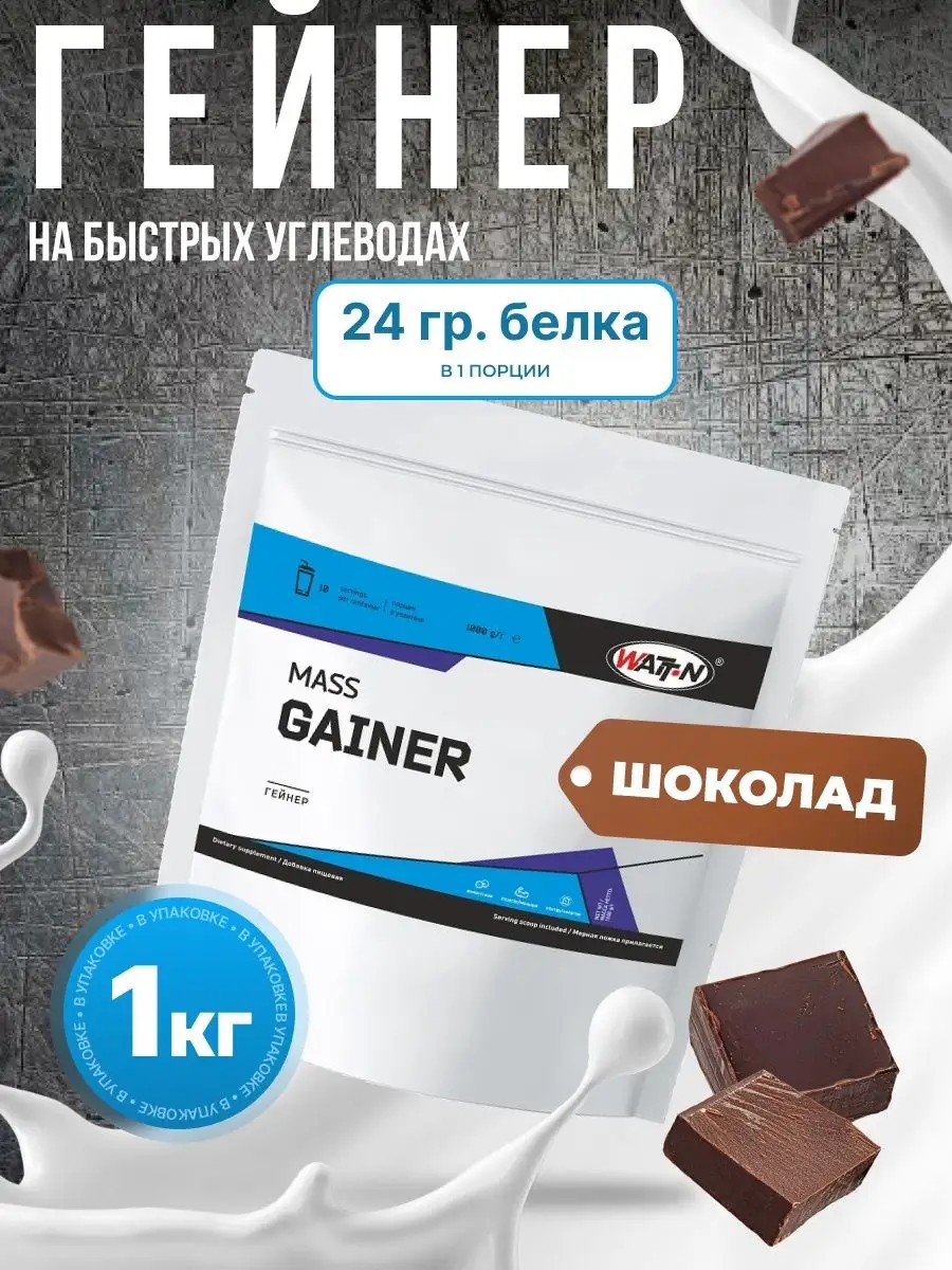 Гейнер для набора массы, Mass Gainer, 1000 гр, шоколад
