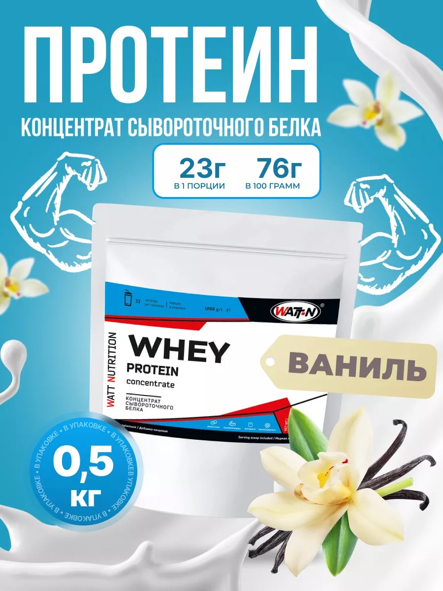 WHEY PROTEIN CONCENTRATE 80 со вкусом ванили 500 гр. от WATT NUTRITION – это фирменный высококачественный концентрат сывороточного белка (КСБ), протеин, протеиновый коктейль или протеиновый коктель. с массовой долей белка 80 % (в чистом виде) , первая форма сывороточного протеина полученная из подсырной сыворотки коровьего молока, способом ультрафильтрации и распылительной сушки. Белок в нём Концентрирован по сравнению с обычным молоком , отсюда название Концентрат. В его состав входит широкий спектр аминокислот для роста и поддержания мышечной массы, а так же для нормализации обмена веществ, без которого , в свою очередь, не происходит снижение жировой прослойки организма. Обладает быстрой скоростью усвоения. Содержит в составе ксантановую камедь, или как некоторые пишут квантовая камедь. Протеиновые коктели бывают разных вкусов, такие как протеин ваниль, протеин шоколад, протеин печенье, протеин клубника, а также имеют разную основу такую как концентрат сывороточного белка или изодят сывороточного белка, который некоторые называют протеиновый изолят. Хороший подарок для любого человека будь то женщина или мужчина которые увлекаются спортом и здоровым образом жизни