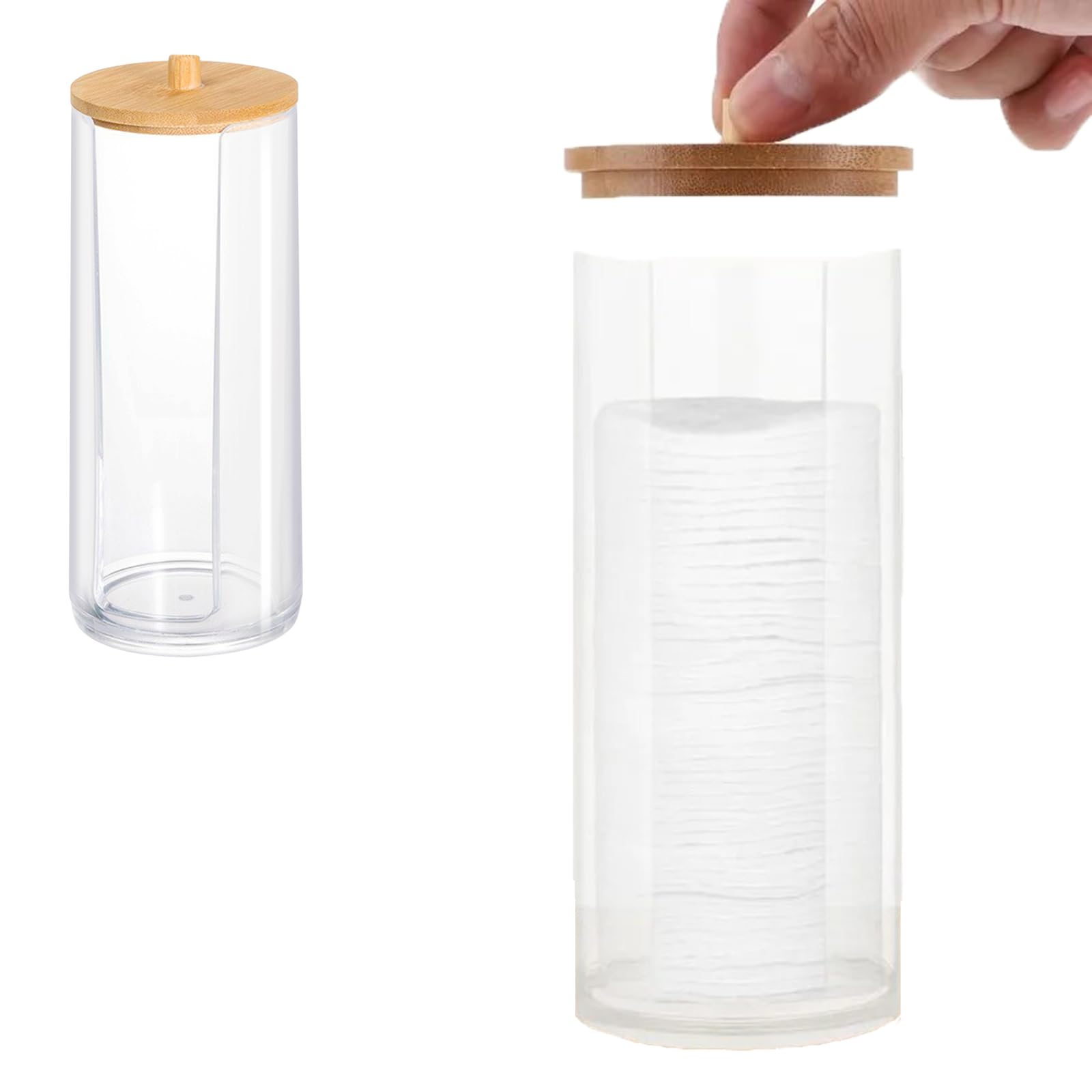 Watt pads storage transparent cotton pad dispenser with bamboo lid acrylic cotton pad container cotton pads cosmetics storage box for cotton pads remover paper cup 17 x 6.7cm