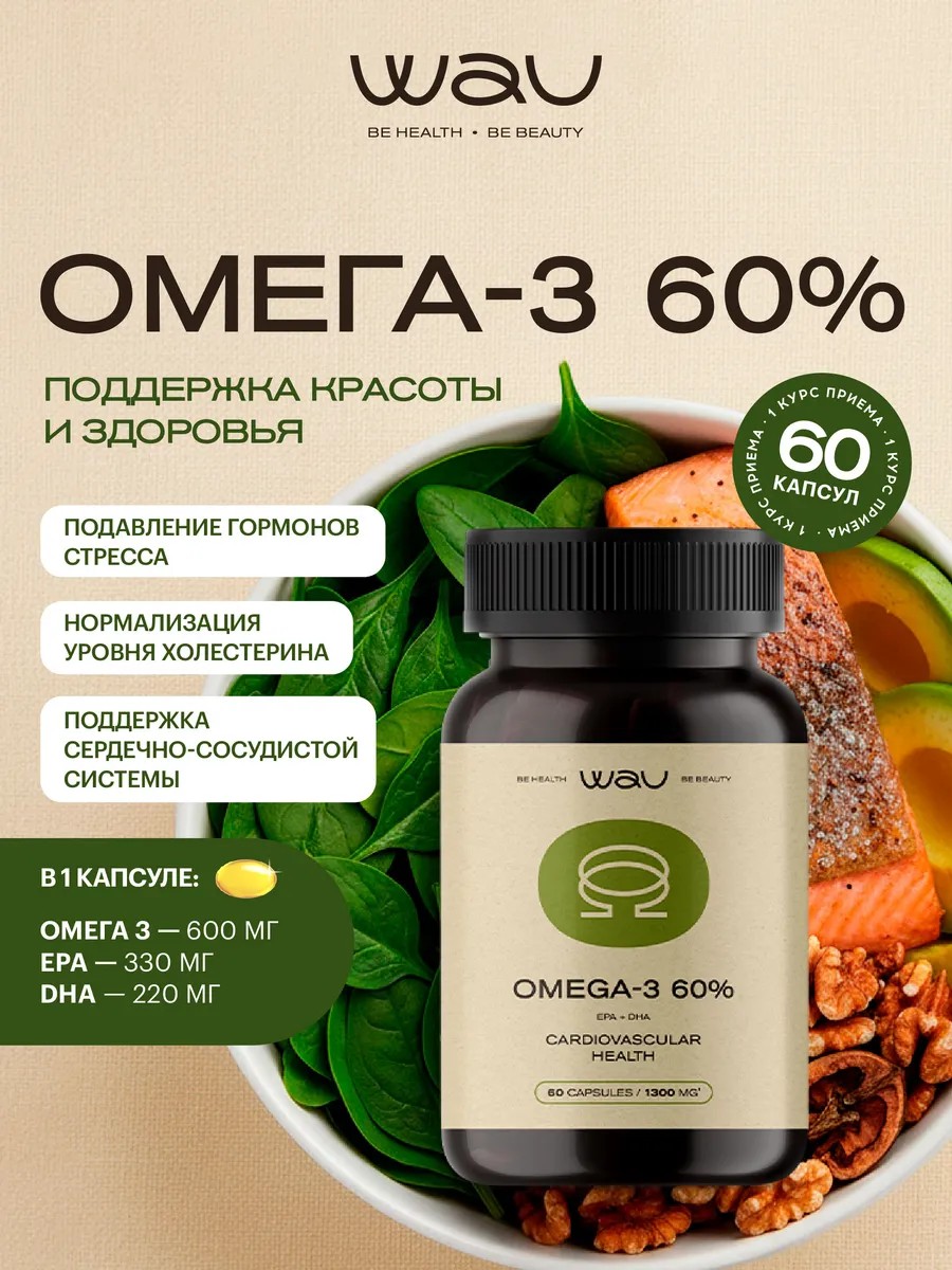 Витамины омега 3 от WAU обеспечивают более высокую концентрацию активных веществ, чем часто встречаемая и распространённая дозировка омега 3 1000мг. Рыбий жир в том количестве, что входит в состав, позволяет получить необходимую дозу активных веществ без необходимости принимать много капсул.