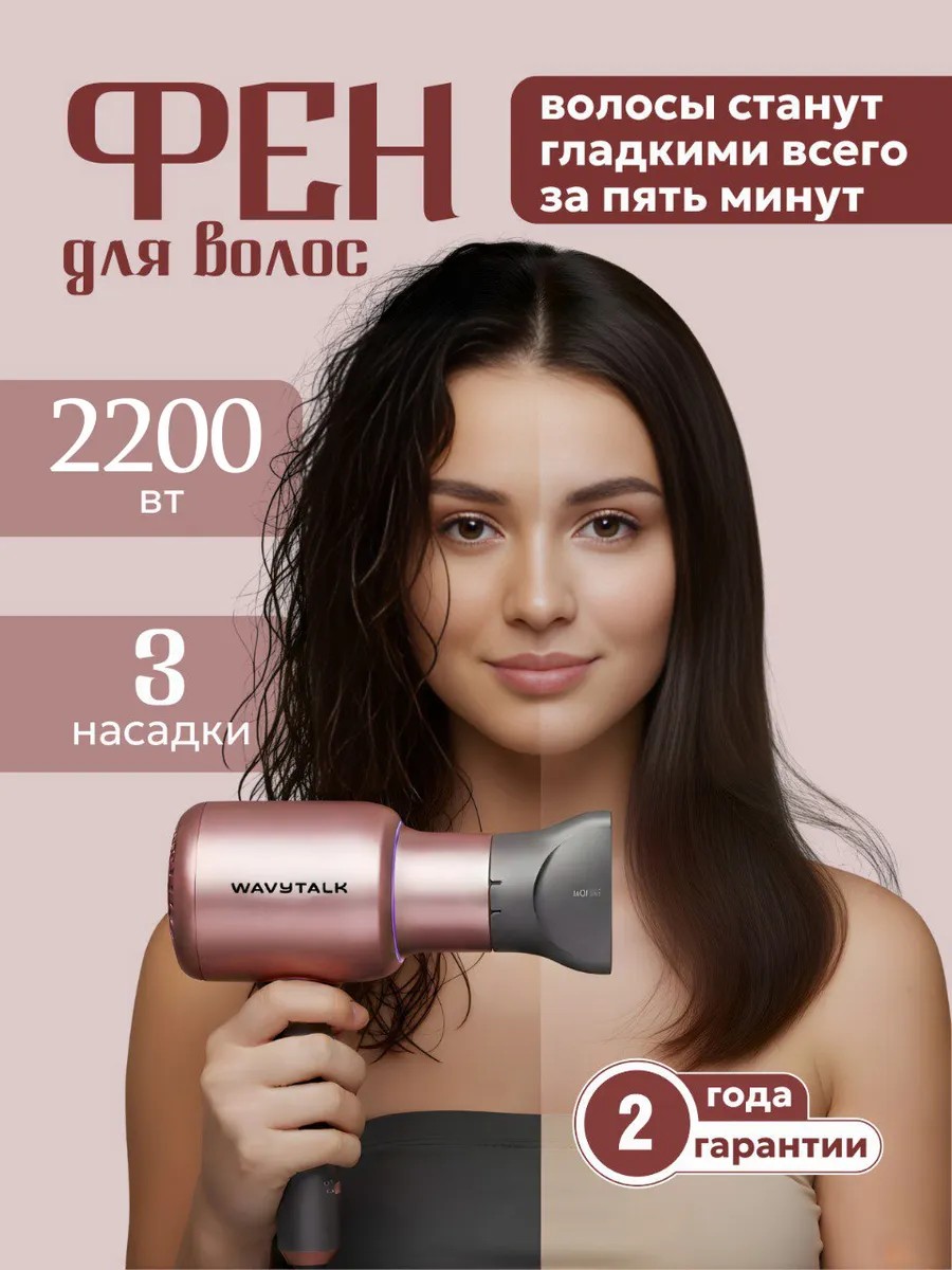 wavytalk Фен для волос профессиональный с ионизацией и насадками