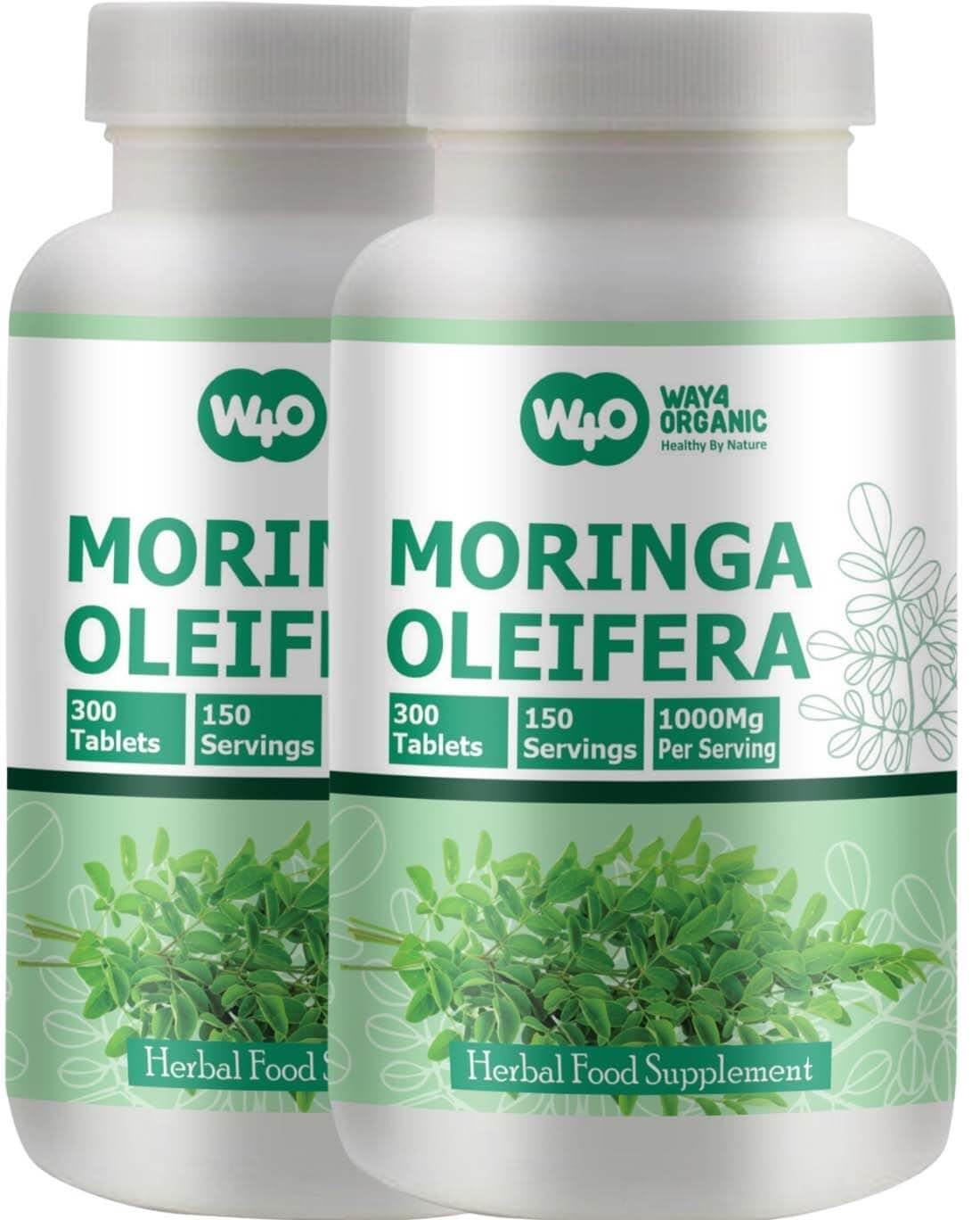 WAY 4 ORGANIC W4O Moringa Leaf Powder Capsules (Tablets) - 300 Pills 150 Servings 1000 mg (2 Pack)