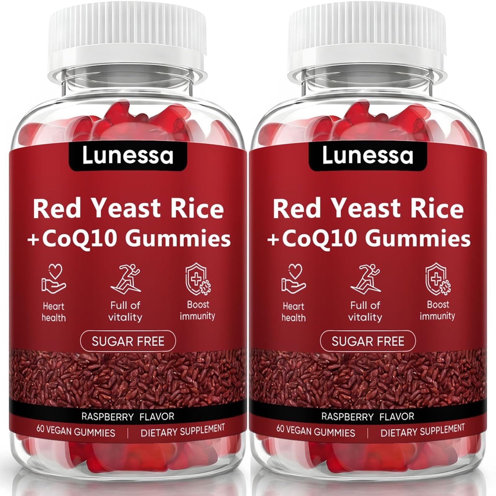WDVNEX Lunessa Red Yeast Rice and CoQ10 Supports Heart & Daily Wellness with Red Yeast Rice 2400mg CoQ10 200mg for Healthy Cholesterol Non-GMO Vegan Raspberry Flavor 60 Gummies Supplement (2)