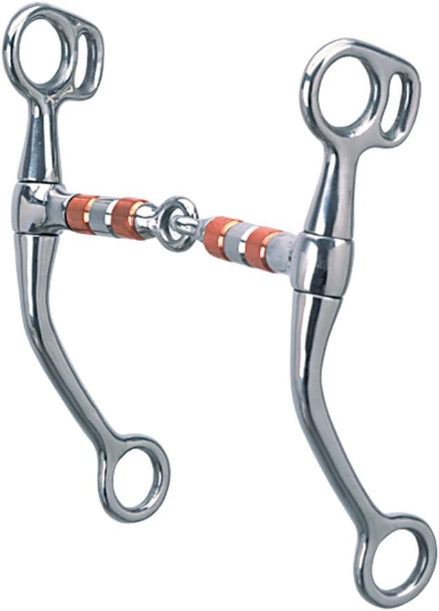 For use by experienced riders, a tom thumb bit is generally used with horses that are not obeying cues from reins. With a jointed mouthpiece and long shanks, a tom thumb bit is a leverage bit that applies pressure to the poll, bars, tongue, and roof of a horse's mouth. This training bit can be an effective training tool in the right hands.