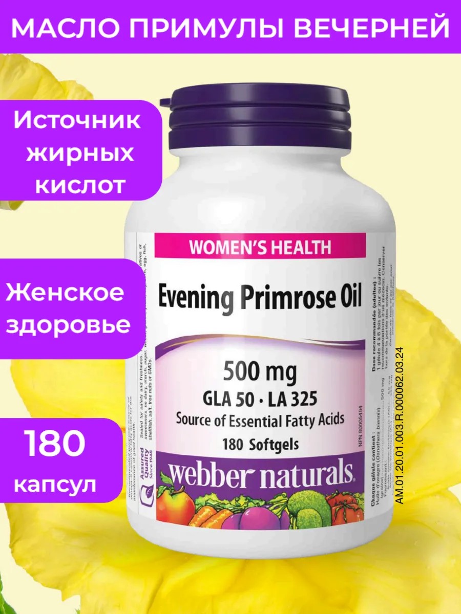 Масло примулы вечерней является богатым источником незаменимых жирных кислот омега-6, гамма-линоленовой кислоты (GLA) и цис-линолевой кислоты (LA). Наш организм не в состоянии вырабатывать эти питательные вещества, поэтому они должны поступать с пищей. Эта формула разработана специально для женского здоровья, поскольку содержит терапевтическое количество GLA и LA. Восстанавливая необходимый уровень этих незаменимых жирных кислот, необходимых для здоровья клеточных мембран и гормонального баланса, масло примулы вечерней оказывается идеальным выбором для женщин.