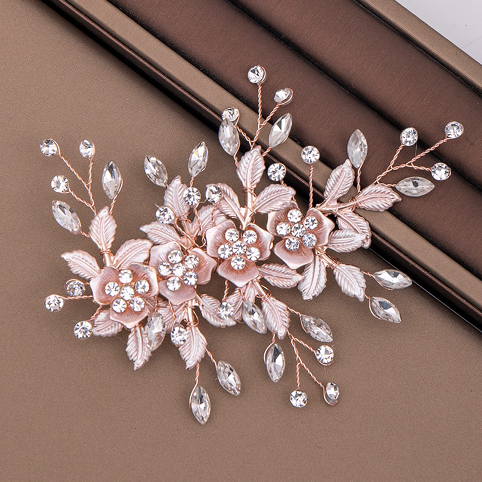 Wedding Hair Clip Hair Accessories for Women Handmade Flower Rhinestone Headpiece Hair Pins for Bridal Bridesmaid Girls (Rose Gold)