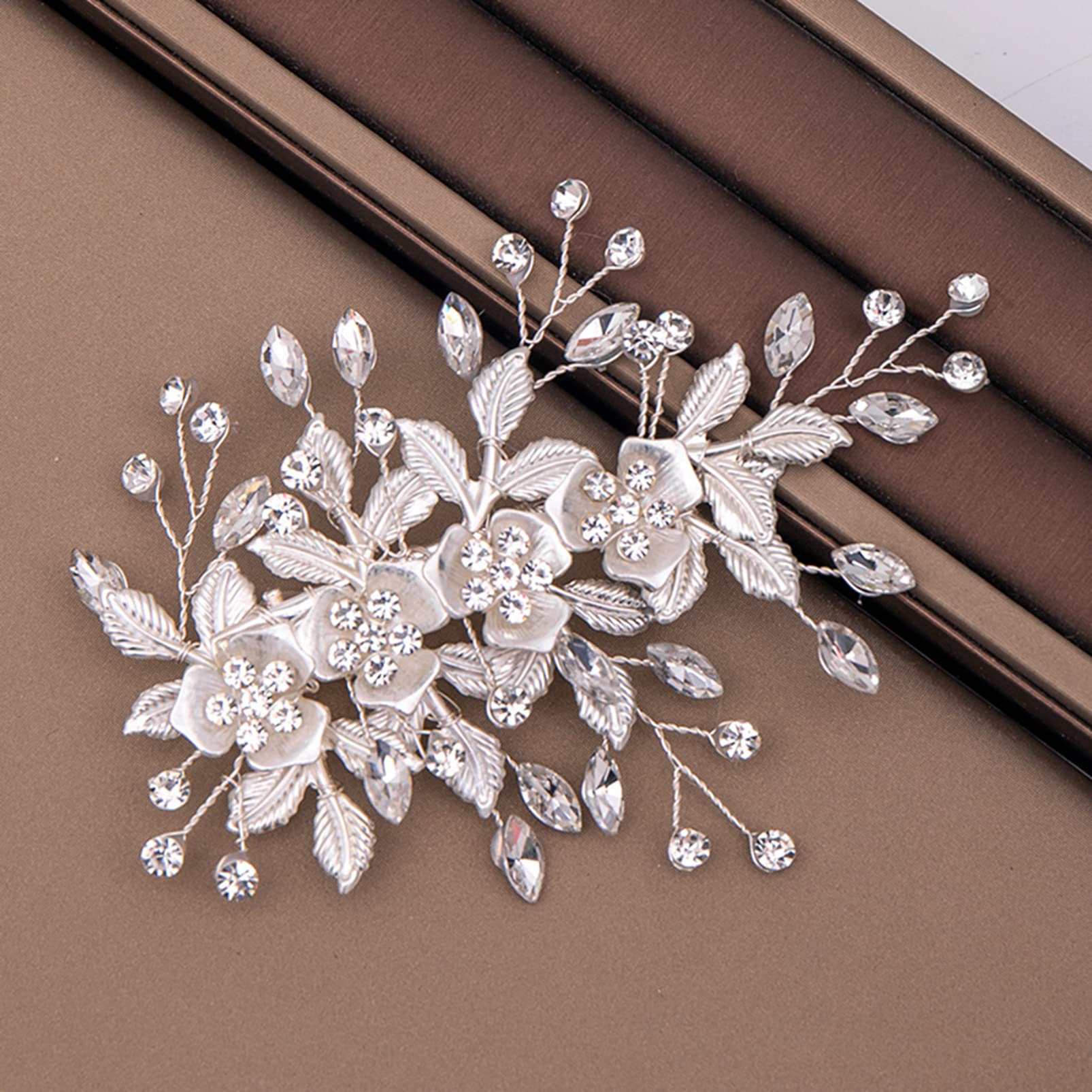 Rose Gold Rhinestone Alloy Flower Hair Pins for Bridal Crystal Hair Clip Bride Headwear Hair ornaments Handmade Wedding Hair Accessories Features: ?Light-weight you will almostly can not feel it,Easy to put in the hair and take off ?It easily go with your any type of dress style ?Glittering floral design with rhinestones and leaves,Charming wedding hairpeace with crystals and shiny flower ?Holiday Gifts--Wedding Gifts,Christmas present,Mother 's Day gift,Halloween gift,New Year gift,Give gifts to relatives and friends Specification: Item Type: Wedding Tiara Hair Clip Material: Rhinestone, Zinc Alloy Process: Handmade Main Color: Gold Color Width: 9 cm Length: 15 cm Occasions: Wedding Ceremony, Mother's day, Evening Party, Christmas,Halloween,Valentine's day, Anniversary,Casual Wear, Prom,Beach Bridal Receptions and any Special Occasion Note: The size of product are manual measurement, there may be 1-2cm error, please understand. DIRECTIONS 1. Remove the hair clip from its packaging. 2. Bend the clip to your desired shape if necessary. 3. Attach the clip to your hair.?Exquisite Handcraft gift?: The flower hair pins comes with a gift box,It is the perfect gift for women and you can give it to your lover, daughter or friend.Ideal gifts for Bridal, Wedding, Bridesmaids Gifts, Prom, Birthday, Holiday or Anniversary. ?Occasons?: This stunning headpiece is a perfect accessory for weddings,engagement,birthday party,anniversary,communions, proms ,Homecoming, Black Tie Galas, Formal Affairs, Holidays, New Year's Eve, boho wedding and more!. ?Easy to Wear?: With a clip on the back,Soft and durable wire is flexible, the clip design is easy to put into the hair and take out.The product can be bent according to your favorite.Flexible Vine Sprays Allow for One-of-a-Kind Styling. ?Size?: The rose gold bridal barrette is approximately 6 inches in length, 3.5 inches in width.A stunning bridal hair clip with sparkling crystals. Elegant Women Decorative Crystal Wedding Hair Accessories for Brides Bridesmaids. ?Handmade Hair Clip?: Alloy rose flower hair clip pure handmade item. Fashion design and special style.this bridal hair Accessories is handmade by rhinestones, floral leaf, rose gold wire and clip.It adds a soft,subtle,romantic,elegant and graceful,touch to your hairstyle.