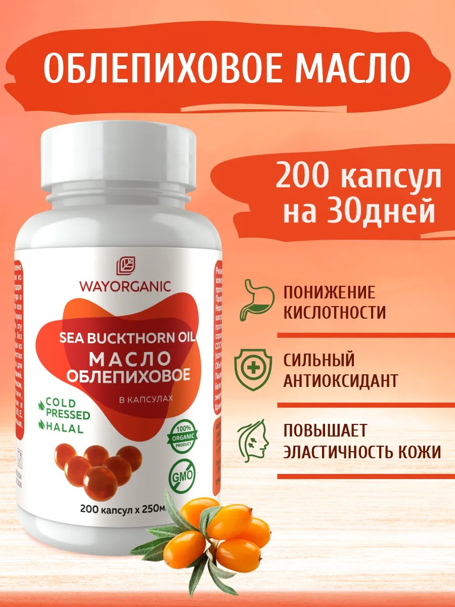 | Package contents | sea buckthorn oil; sea buckthorn oil; 1 jar - 200 capsules; Sea buckthorn oil in capsules; virgin oil |