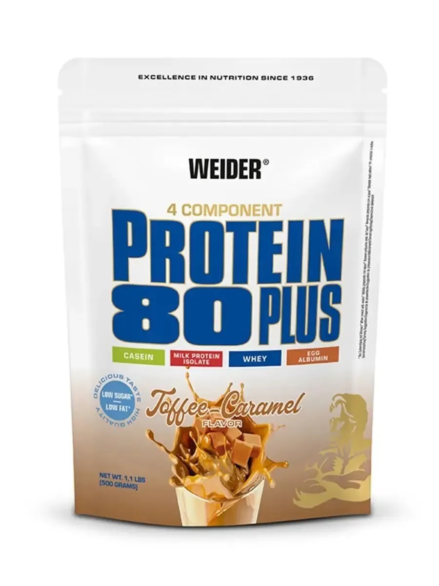 Protein 80 Plus от Weider (Германия), 500 г - вкусный протеиновый коктейль для повышения количества белка в дневном рационе. Это высококачественная белковая смесь, состоящая из четырех компонентов: казеина, изолята молочного белка, сывороточного белка и яичного белка. Он сочетает в себе преимущества высококачественных источников протеина: высочайшую ценность, легкую переносимость и оптимальный состав аминокислот. Отличный вкус и низкое содержание белков и углеводов.Weider Protein 80 Plus:cодержит все необходимые незаменимые аминокислоты для биосинтеза белка; увеличивает силовые показатели и выносливость; быстро активизирует и усиливает рост мышц; помогает поддерживать сухую мышечную массу; способствует быстрому восстановлению после тренировок; обеспечивает иммуноглобулины, поддерживая иммунную систему, которая временно подавляется во время напряженных тренировок. Молочный белок (казеин): обеспечивает мускулатуру протеином в течение семи часов, содержит большое количество ВСАА. Изолят молочного белка: в сухом веществе содержится более 90% протеина. Это означает очень низкое содержание жиров и углеводов!Белок молочной сыворотки (Whey): быстро усваиваемый протеин. Снабжает мускулатуру в том числе и L-глютамином. Яичный белок (альбумин): содержит так называемые сернистые аминокислоты. Это повышает биологическую ценность продукта. Компании WEIDER удалось с помощью этой особой смеси достичь химического показателя (ChemicalScore) 144 (измеряется по FNB). Это значение просто невероятно! Protein 80 значительно превышает требования по рекомендуемому содержанию аминокислот. Энергетическая ценность одной порции (на 300 мл молока 1,5% жирности): 254 ккал. Пищевая ценность одной порции (на 300 мл молока 1,5% жирности): жиры 5,3 г, углеводы 17 г, белки 34 г.4 компонента: казеин, изолят молочного белка, сывороточный белок и яичный белок; оптимальный аминоскислотный состав; низкое содержание жиров и углеводов; легкое усвоение. Упаковка 500 г. Рекомендации по применению: 30 г порошка (2 мерные ложки) размешать в 300 мл воды, полученный напиток принимать взрослым 1 раз в день во время еды. Состав: кальция казеинат, концентрат белка молочной сыворотки, изолят молочного белка, сухой яичный белок, ароматизатор, загуститель: Е412, подсластители: Е950, E952, E955, кальция карбонат, антиоксилитель: Е300, пиридоксина гидрохлорид. Содержит лактозу. Может содержать незначительное количество глютена и сои. Свидетельство о государственной регистрации RU.77.99.11.003.R.001585.06.20 от 18.06.2020Обратите внимание! Производитель находится в процессе смены дизайна упаковки. Протеин может поставляться в пакетах с различным дизайном в зависимости от наличия на складе.