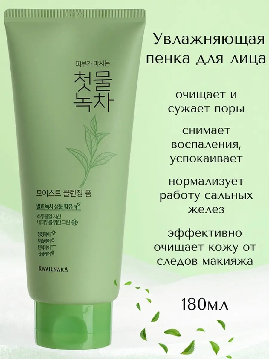 Green Tea Moist Cleansing Foam 180гр Пенка для умывания корея антивозрастная против прыщей и воспалений с пантенолом обеспечивает деликатное, легко проникает в поры, очищает и сужает их, матирует. Пенка для умывания для проблемной кожи делает кожу гладкой и шелковистой. Пенка для умывания лица осветляющая против пигментных пятен, омолаживает. Экстракт зеленого чая - мощный антиоксидант, устраняет признаки старения, останавливает увядание. Увлажняет, снимает воспаления, успокаивает. Нормализует работу сальных желез, подавляет деятельность бактерий и микробов, убирает прыщи и угревые высыпания. Тонизирует, повышает упругость и эластичность кожного покрова. Борется с пигментацией. Осветляет. Очищает кожный покров. Защищает от неблагоприятных факторов окружающей среды. Пантенол - увлажняет кожный покров. Препятствует потере влаги. Восстанавливает и укрепляет ткани. Повышает эластичность кожи. Снимает воспаления. Экстракт риса - содержит антиоксиданты, замедляет увядание. Восстанавливает коллагеновые волокна, возвращает эластичность. Увлажняет. Обеспечивает деликатное очищение.