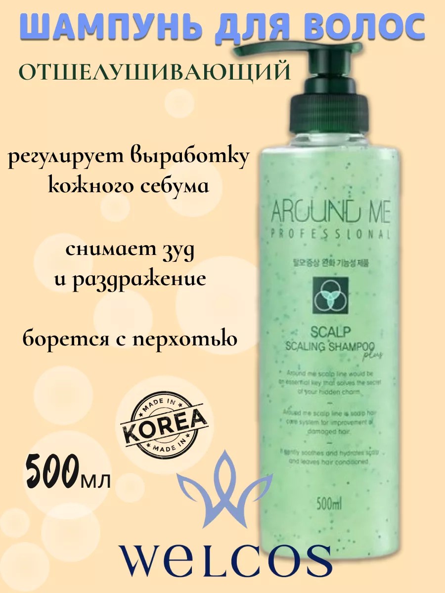 Отшелушивающий шампунь Welcos Around Me Scalp Scaling Shampoo тщательно промывает волосы и кожу головы, убирает ороговевшие частички, излишки кожного себума и остатки косметических средств с кожи, оставляет волосы свежими и чистыми. Регулирует выработку кожного себума, успокаивает кожу голову, снимает зуд и раздражение, борется с перхотью.