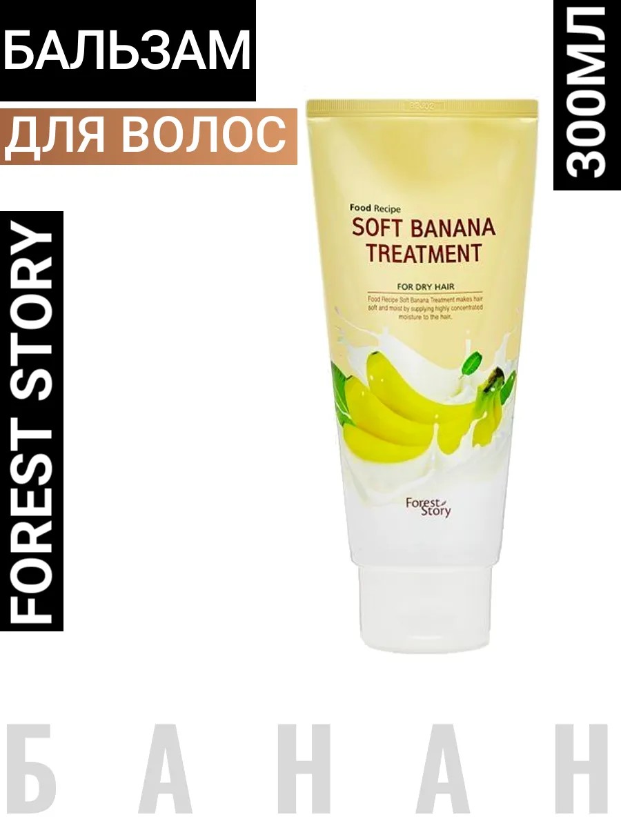 Бальзам для волос с ароматом банана Forest Story Food Recipe Soft Banana Treatment,300мл.Бальзам с нежным банановым ароматом ухаживает за сухими волосами. Экстракт банана глубоко проникает в волосы и делает их гладкими, увлажненными. Протеин укрепляет волосы и придает им сияние. Экстракт меда помогает сохранять влагу в волосах. Способ применения: после использования шампуня нанесите бальзам на влажные волосы и распределите его по всей длине волос. Подержите 1-3 минуты, а затем смойте теплой водой. Состав:Water, Ammonium Lauryl Sulfate, Sodium Laureth Sulfate, Cocamidopropyl Betaine, Glycerin, Dimethicone, Fragrance, PEG-150 Distearate, Cetyl Alcohol, Sodium Chloride, Guar Hydroxypropyltrimonium Chloride, Styrene/Acrylates Copolymer, Hydrogenated Polydecene, Trihydroxystearin, Citric Acid, Laureth-3, Laureth-5, Laureth-7, Disodium EDTA, Benzophenone-5, Trideceth-10, Amodimethicone, Caprylic/Capric Triglyceride, Magnesium Nitrate, Methylchloroisothiazolinone, Magnesium Chloride, Methylisothiazolinone, Rosa Canina Fruit Oil