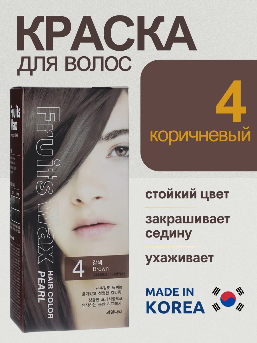 Краска для волос профессиональная бережно окрашивает благодаря натуральным компонентам. Стойкая крем-краска Welcos Fruits Wax Pearl Hair Color легко наносится, специальные пигменты подходит для седины, хорошо держится на волосах. Цвет каштановый, шоколад, мокко. В комплект входит: краска, окислитель, перчатки.