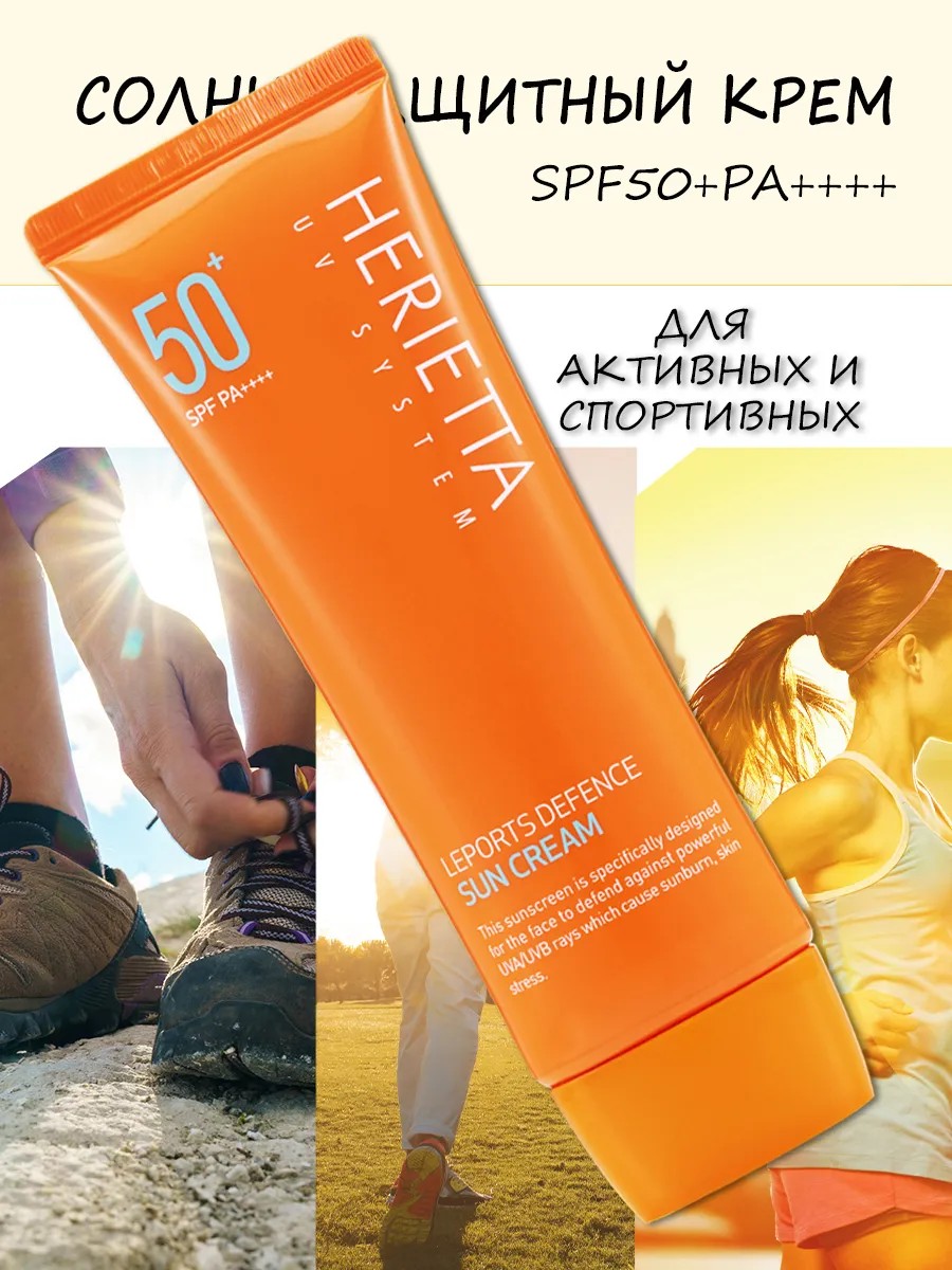 Солнцезащитный крем Welcos Herietta Leports Defence Sun Cream SPF50 + PA +++ подарит надежную защиту от солнца для всех типов кожи кожи. Крем рекомендуется к использованию в том числе при активных спортивных или иных занятиях на солнце, устоичив к поту и влаге. Защищает от UVA UVB лучей, обладает высоким индексом защиты. Крем от солнца содержит химические и физические УФ фильтры, которые оберегают кожу от появления пигментации, солнечных ожогов и фотостарения кожи. Играете в теннис, гольф, занимаетесь хайкингом или просто активно гуляете, значит этот крем предназначен для Вас. Применение: Нанести на кожу перед выходом на солнце. Обновлять по мере необходимости, примерно каждые 2 часа.