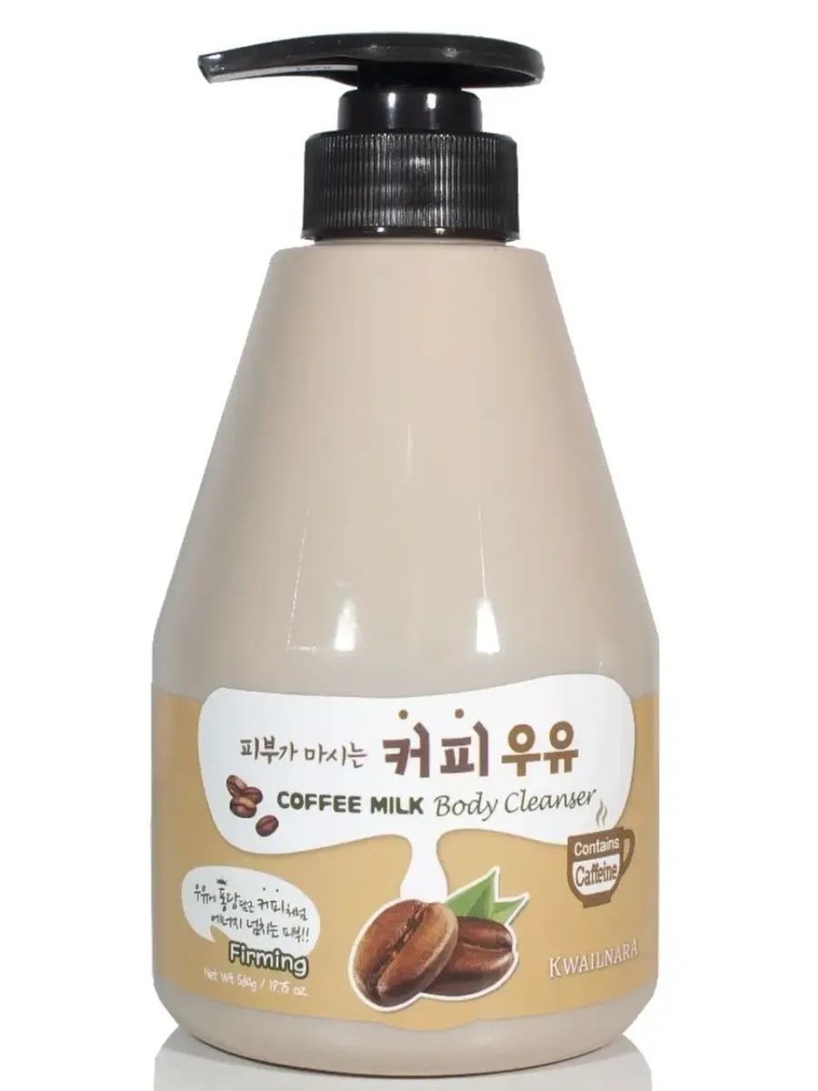Welcos Kwailnara Coffee Milk Body Cleanser 560ml. This shower gel is enriched with milk protein, which smoothes, softens, and moisturizes the skin. Coffee extract energizes and has a calming and softening effect. Directions: Lather a small amount of gel in your hands, lather a washcloth or your body, and rinse with water. Ingredients: Water, Ammonium Lauryl Sulfate, Ammonium Laureth Sulfate, Cocamidopropyl Betaine, Sodium Chloride, Sodium Benzoate, Fragrance, Styrene/Acrylates Copolymer, Phenoxyethanol, Musa Sapientum (Banana) Fruit Extract, Sodium Sulfate, Laureth-3, Citric Acid, Disodium EDTA, Butylene Glycol, Panthenol, Honey Extract, Alcohol, Tris(Tetramethylhydroxypiperidinol) Citrate, CI 19140, CI 15985, Milk Protein Extract, Propolis Extract, Royal Jelly Extract.