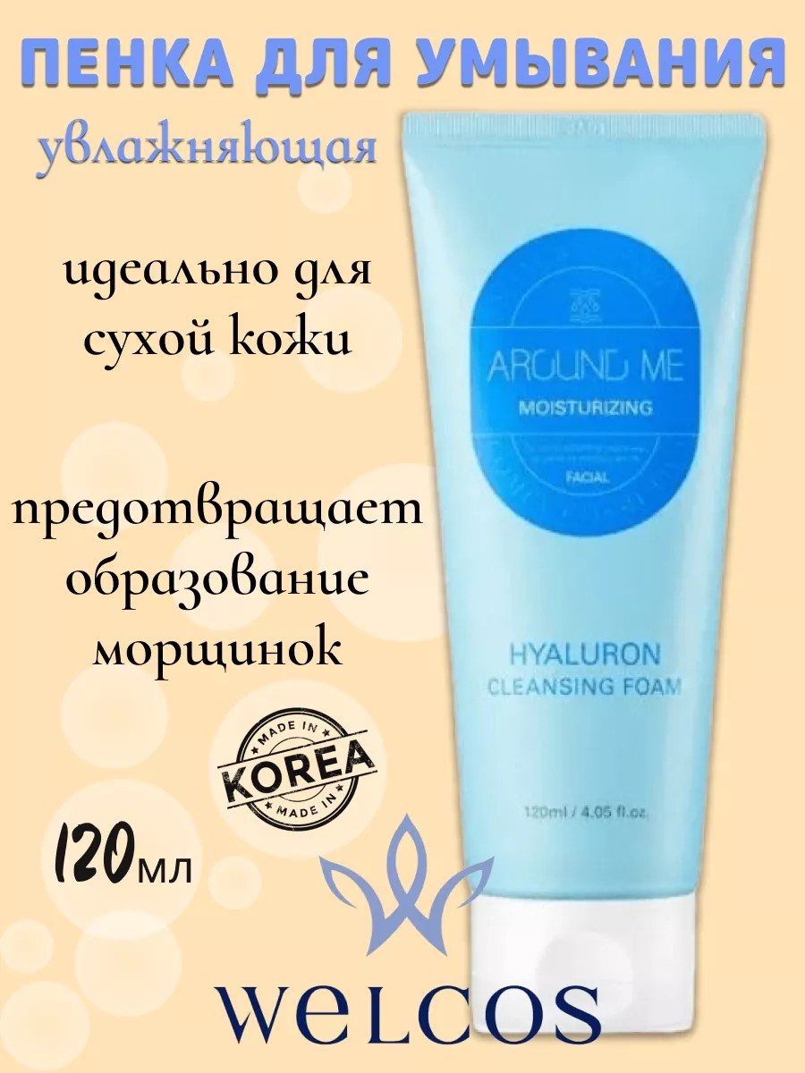 Увлажняющая пенка для умывания Around Me Moisture Hyalon Cleansing Foam от корейского бренда Welcos — мягкое очищающее средство для ежедневного ухода за кожей, очищения от пыли, загрязнений, косметики. Эффективная формула средства помогает бороться с излишней выработкой себума и предотвращает появление черных точек.
