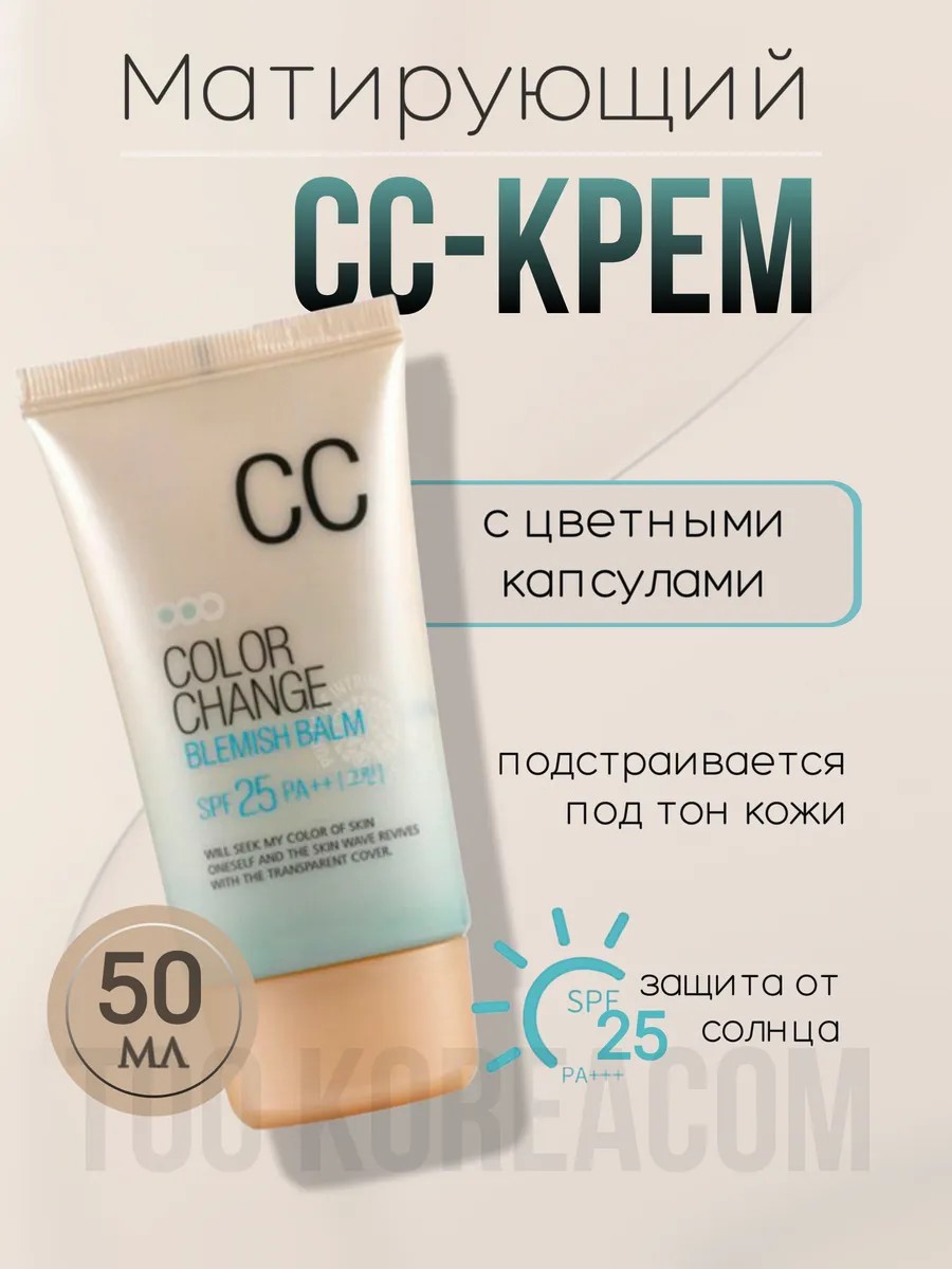 Уникальный СС крем для лица от корейского бренда Welcos Lotus Color Change Blemish Balm SPF25 PA++ - это хит продаж, идеальное средство для создания безупречного макияжа и ежедневного ухода за кожей с матовым финишем, при этом не пересушивает и не стягивает кожу. Он обладает уникальной способностью менять цвет и подстраиваться под ваш тон кожи, обеспечивая матовый эффект, устраняя жирный блеск и защищая от солнечных лучей. СС крем увлажняющий Корея с цветовыми капсулами для выравнивания тона лица имеет нежно-зеленый оттенок, который после нанесения на кожу благодаря множеству микрокапсул с пигментом светлеет, а затем приобретает телесный цвет, который идеально совпадает с натуральным оттенком кожи, матирует. Крем рекомендован для ежедневного ухода за кожей и может стать альтернативой другим тональным средствам. Но это не все! СС крем также увлажняет кожу, маскирует красноту, пигментацию, сосуды, может служить средством против прыщей и от акне. Он не проваливается в поры, имеет некомедогенную формулу и справляется с воспалениями. Скрывает несовершенства без эффекта маски. Солнцезащитный крем спф 25 снижает риск получения солнечного ожога или пигментации, не оставляет следов на одежде и подходит для всех типов женской кожи. Очень комфортен в использовании и практически не ощутим на лице. Объем крема welcos составляет 50 мл, что является оптимальным размером для длительного использования. Так что, если вы хотите иметь безупречную и ухоженную кожу - это именно то, что вам нужно!