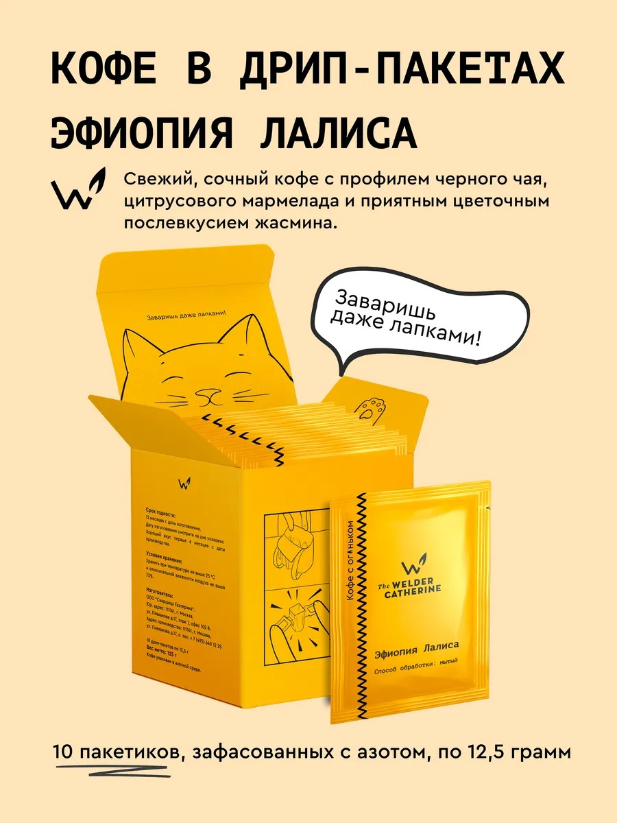 Сварщица Екатерина Кофе в дрип-пакетах Эфиопия Лалиса, 10 шт.