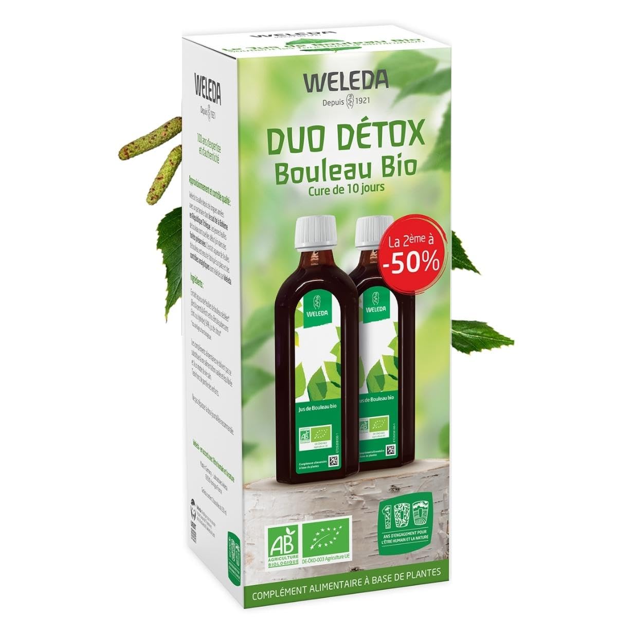 Prepared to collect the essential substances of the leaves, this food supplement with organic birch leaf extract helps to promote elimination functions. Recommended during the transitional seasons (spring, autumn), for a period of 3 weeks, Birch Juice, without sugar, is particularly indicated as a complement to a controlled calorie intake diet. For your health, avoid eating too fatty, too sweet, too salty. This natural food supplement with organic birch leaf extract supports elimination functions. FEATURES : -Eliminate – detoxify -WELEDA ORGANIC BIRCH JUICE: Based on birch leaf extract and organic lemon juice, this natural juice is an excellent detox and slimming food supplement that promotes the body's natural elimination functions. -FOR WHO? : Weleda birch juice is ideal for detoxifying the body and helping adults regain balance and vitality in transitional seasons as well as for stimulating elimination functions in athletes. -THE VIRTUES OF BIRCH: Birch leaves are known for their richness in antioxidant flavonoids. They help to facilitate the body's elimination mechanisms, for a natural slimming and detox action. - ADVICE FOR USE: Ideal as a treatment, in addition to a healthy lifestyle and a varied diet, this juice is consumed 3 times a day, at a rate of 15 ml per dose (1 tablespoon), to be diluted in a glass of water. -A PIONEER BRAND IN NATURAL COSMETICS: Since 1921, Weleda laboratories have offered cosmetic products of natural origin to preserve the beauty and well-being of the whole family. Body part: Food supplements Skin type: No specificity Capacity: 2x200 ml INGREDIENTS : Aqueous extract of young organic DIRECTIONS FOR USE 1. Open the product and refrigerate it. 2. Take 15 ml or 1 tablespoon, 3 times a day. 3. Dilute in a glass of water. SAFETY WARNING None Organic : Certified Organic. - Vegan : Contains no ingredients of animal origin. A PIONEERING BRAND IN NATURAL AND ORGANIC COSMETICS: Since 1921, Weleda laboratories have been offering cosmetic products of natural origin to preserve the beauty and well-being of the whole family. DIRECTIONS FOR USE: Ideal as a treatment, in addition to a healthy lifestyle and a varied diet, this juice is consumed 3 times a day, at a rate of 15 ml per dose (1 tablespoon), to be diluted in a glass of water. THE BENEFITS OF BIRCH: Birch leaves are known for their richness in antioxidant flavonoids. They help facilitate the body's elimination mechanisms, for a slimming and natural detox action. FOR WHOM? : Weleda Birch Juice is ideal for detoxifying the body and helping adults regain balance and vitality during transitional seasons, as well as for stimulating elimination functions in athletes. WELEDA ORGANIC BIRCH JUICE: Made with birch leaf extract and organic lemon juice, this natural juice is an excellent detox and slimming food supplement that promotes the body's natural elimination functions. Préparé de façon à recueillir les substances essentielles des feuilles, ce complément alimentaire à l'extrait de feuilles de bouleau biologique contribue à favoriser les fonctions délimination. Conseillé au cours des saisons de transitions (printemps, automne), pendant une période de 3 semaines, le Jus de Bouleau, sans sucre, est particulièrement indiqué en complément dun régime dapport calorique contrôlé. Pour votre santé, évitez de manger trop gras, trop sucré, trop salé. Ce complément alimentaire naturel à l'extrait de feuilles de bouleau biologique soutient les fonctions délimination. CARACTERISTIQUES : -Eliminer - détoxifier -JUS DE BOULEAU BIO WELEDA : À base d'extrait de feuilles de bouleau et de jus de citron bio, ce jus naturel est un excellent complément alimentaire détox et minceur qui favorise les fonctions d'élimination naturelles de l'organisme. -POUR QUI ? : Le jus de bouleau Weleda est idéal pour détoxifier l'organisme et aider les adultes à retrouver équilibre et vitalité aux saisons de transition ainsi que pour stimuler les fonctions d'élimination chez les sportifs. -LES VERTUS DU BOULEAU : Les feuilles de bouleau sont connues pour leur richesse en flavonoïdes antioxydants. Elles contribuent à faciliter les mécanismes d'élimination de l'organisme, pour une action minceur et détox naturelle. -CONSEILS D'UTILISATION : Idéal en cure, en complément d'un mode de vie sain et d'une alimentation variée, ce jus se consomme 3 fois par jour, à raison de 15 ml par prise (1 cuillère à soupe), à diluer dans un verre d'eau. -UNE MARQUE PIONNIÈRE DE LA COSMÉTIQUE NATURELLE : Depuis 1921, les laboratoires Weleda proposent des produits cosmétiques d'origine naturelle pour préserver la beauté et le bien-être de toute la famille. Partie du corps : Compléments alimentaires Type de peau : Pas de spécificité Contenance : 2x200 ml INGREDIENTS : Aqueous extract of young organic MODE D'EMPLOI 1. Ouvrir le produit et le réfrigérer. 2. Prendre 15 ml ou 1 cuillère à soupe, 3 fois par jour. 3. Diluer dans un verre d'eau. AVERTISSEMENT DE SÛRETÉ Aucun Bio : Certifié Bio. - Végan : Ne contient pas d'ingrédients d'origine animale. UNE MARQUE PIONNIÈRE DE LA COSMÉTIQUE NATURELLE ET BIO : Depuis 1921, les laboratoires Weleda proposent des produits cosmétiques d'origine naturelle pour préserver la beauté et le bien-être de toute la famille. CONSEILS D'UTILISATION : Idéal en cure, en complément d'un mode de vie sain et d'une alimentation variée, ce jus se consomme 3 fois par jour, à raison de 15 ml par prise (1 cuillère à soupe), à diluer dans un verre d'eau. LES VERTUS DU BOULEAU : Les feuilles de bouleau sont connues pour leur richesse en flavonoïdes antioxydants. Elles contribuent à faciliter les mécanismes d'élimination de l'organisme, pour une action minceur et détox naturelle. POUR QUI ? : Le jus de bouleau Weleda est idéal pour détoxifier l'organisme et aider les adultes à retrouver équilibre et vitalité aux saisons de transition ainsi que pour stimuler les fonctions d'élimi