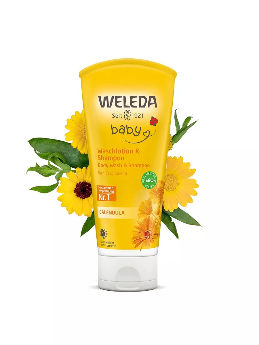 Weleda Baby Shampoo and Body Gel with Calendula, 200 ml. This baby shampoo and gel gently cleanses and cares for your baby's body and hair. Essential oils are minimal: no more than necessary to preserve the product, without the use of synthetic preservatives. The soft scent of lavender, flowers, and fruits is so delicate that it doesn't overpower your baby's wonderful sweet scent. Medicinal herbal extracts prevent inflammation. Gentle on eyes. Contains carefully selected natural ingredients that make hair easy to comb and soft and silky. Also suitable for adults with particularly sensitive skin. 100% natural. Contains no synthetic preservatives, dyes, fragrances, or mineral oils. Dermatologically tested. Clinically proven effectiveness. 100 years of expertise from Weleda, the world leader in natural cosmetics. Gentle cleansing for your baby's skin. Relaxes baby before bed, gently cleanses and soothes skin.