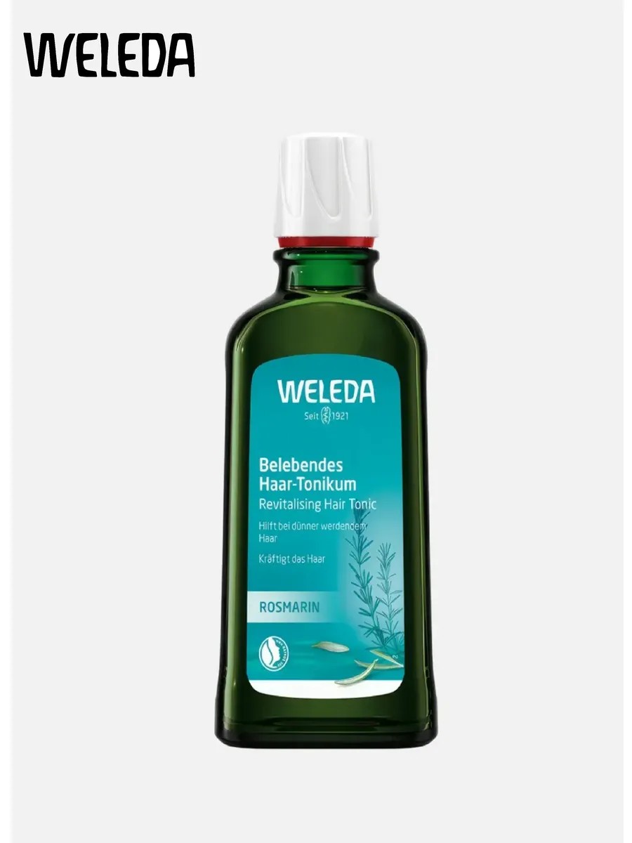 WELEDA Revitaliziran tonik. Натуральное средство с бодрящим ароматом на основе природных эфирных масел эффективно укрепляет и тонизирует кожу головы. Экстракты листьев хрена и очитка в сочетании с маслом листьев розмарина интенсивно питают корни волос, уменьшают выпадение и стимулируют естественный рост волос.