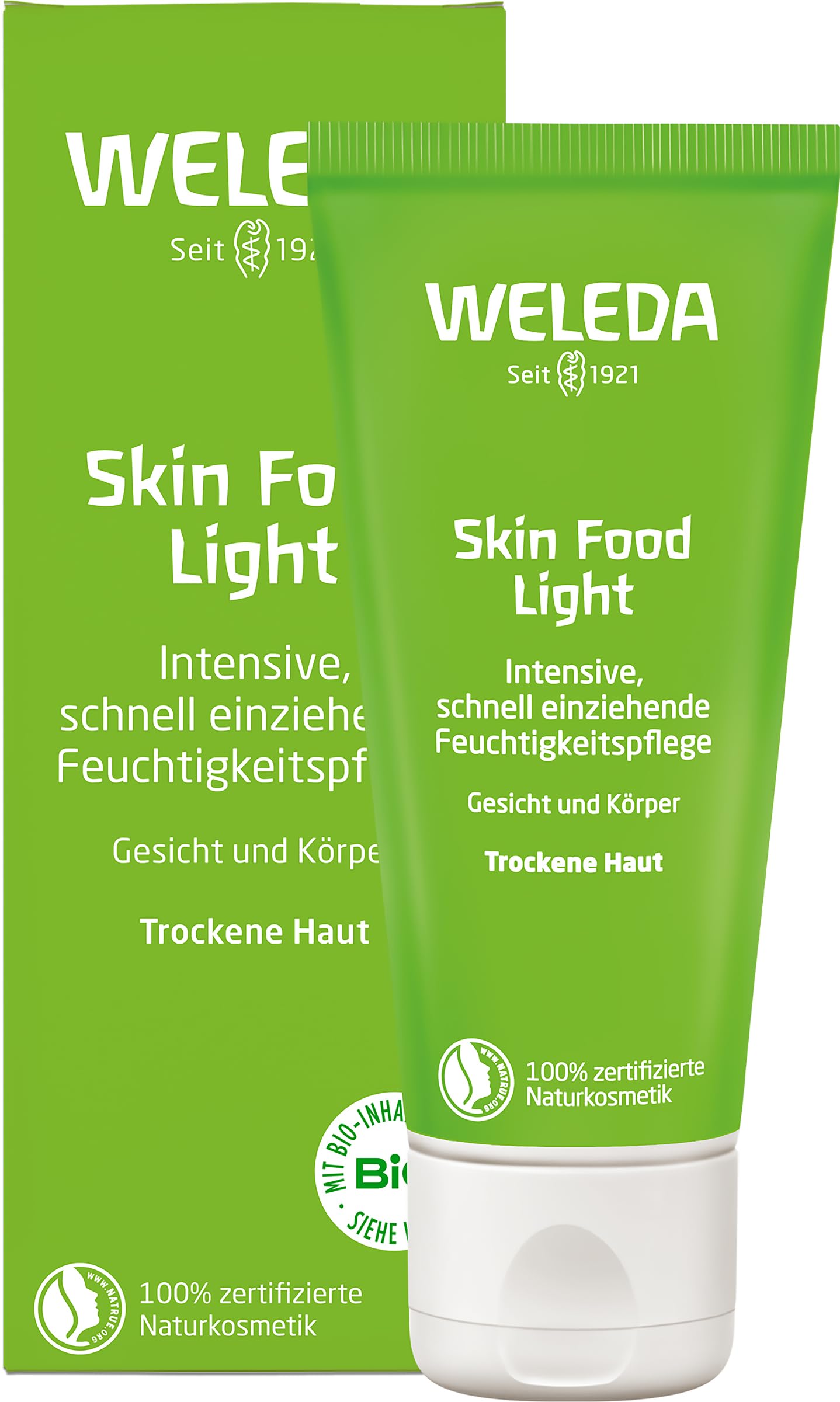 Skin Food Light absorbs quickly and intensely moisturizes. With soothing plant extracts, it regenerates the skin barrier and protects against dryness. For a feeling of softness and smoothness. A superfood for your skin. The popular Skin Food cream is now available in a light version. With the expansion of the Skin Food range with Skin Food Light, everyone who loves our popular Skin Food cream but has longed for a slightly lighter, fast-absorbing cream will find it here. Skin Food Light meets this need and immediately quenches the thirst of hungry skin. The cream leaves a pleasant feeling on the skin and provides intense moisturizing care. 2-in-1 application: ideal for treating dry areas of the face and body. Tip: Skin Food Light is a great travel companion: it absorbs quickly and saves space in your bag – with just one cream, dry skin on the face and body can be quenched. INGREDIENTS Ingredients (INCI): Water (Aqua), Helianthus Annuus (Sunflower) Seed Oil , Glycerin, Alcohol , Glyceryl Stearate Citrate, Beeswax (Cera Alba) , Theobroma Cacao (Cocoa) Seed Butter , Cetearyl Alcohol, Butyrospermum Parkii (Shea) Butter , Limonene , Viola Tricolor Extract, Rosemary Leaf Extract , Chamomilla Recutita (Matricaria) Flower Extract , Calendula Officinalis Flower Extract , Lanolin, Carrageenan, Xanthan Gum, Lactic Acid, Glyceryl Caprylate, Fragrance (Parfum) , Linalool , Geraniol , Citral . From natural essential oils and or plant extracts organic ingredientsHigh-quality plant oils including organic sunflower oil, organic shea butter, organic cocoa butter, and organic beeswax. Precious plant extracts of pansy, chamomile, and calendula flowers. Protects skin from dryness. Lightweight formula – absorbs quickly. Intensive care for the body and face.WELEDA: Skin Food light Crème pour la peau visage et corps 30 ml (12)DESCRIPTION DU PRODUIT DESCRIPTION DU PRODUIT Skin Food Light pénètre rapidement et hydrate intensément. Avec des extraits de plantes apaisants, il régénère la barrière cutanée et protège contre le dessèchement. Pour une sensation de douceur et de douceur. Super aliment pour la peau. La crème cutanée populaire Skin Food existe également en version légère. Avec l'élargissement de la gamme de soins par Skin Food Light, tous ceux qui aiment notre populaire crème pour la peau Skin Food mais ont aspiré à une crème légèrement plus légère qui pénètre rapidement. Skin Food Light répond à ce besoin et apaise immédiatement la soif des peaux affamées. La crème laisse une sensation agréable sur la peau et lui donne un soin hydratant intense. Application 2 en 1 : idéal pour le soin des zones sèches de la peau du visage et du corps. Astuce : Skin Food Light est un compagnon apprécié en particulier pour les déplacements : Skin Food Light pénètre rapidement et économise de l'espace dans le sac – avec une seule crème, la peau sèche du visage et du corps peut être étanchée. INGRÉDIENTS Ingrédients (INCI) : Water (Aqua), Helianthus Annuus (Sunflower) Seed Oil , Glycerin, Alcohol , Glyceryl Stearate Citrate, Beeswax (Cera Alba) , Theobroma Cacao (Cocoa) Seed Butter , Cetearyl Alcohol, Butyrospermum Parkii (Shea) Butter , Limonene , Extrait tricolore Viola Extrait de feuille de romarinus officinalis (Rosemary) Leaf Extract , Chamomilla Recutita (Matricaria) Flower Extract , Calendula Officinalis Flower Extract , Lanolin, Carraghénan, gomme xanthane, acide lactique, Caprylate de glycéryle, Fragrance (parfum) , Linalool , Geraniol , Citral . À partir d'huiles essentielles naturelles et ou d'extraits de plantes ingrédients biologiquesHuiles végétales de haute qualité avec huile de tournesol bio, beurre de karité bio, beurre de cacao bio et cire d'abeille biologique. Extraits végétaux précieux de pensées, de camomille et de fleurs de calendula. Protège la peau du dessèchement. Formule légère - Pénètre rapidement. Soin intensif pour le corps et le visage.