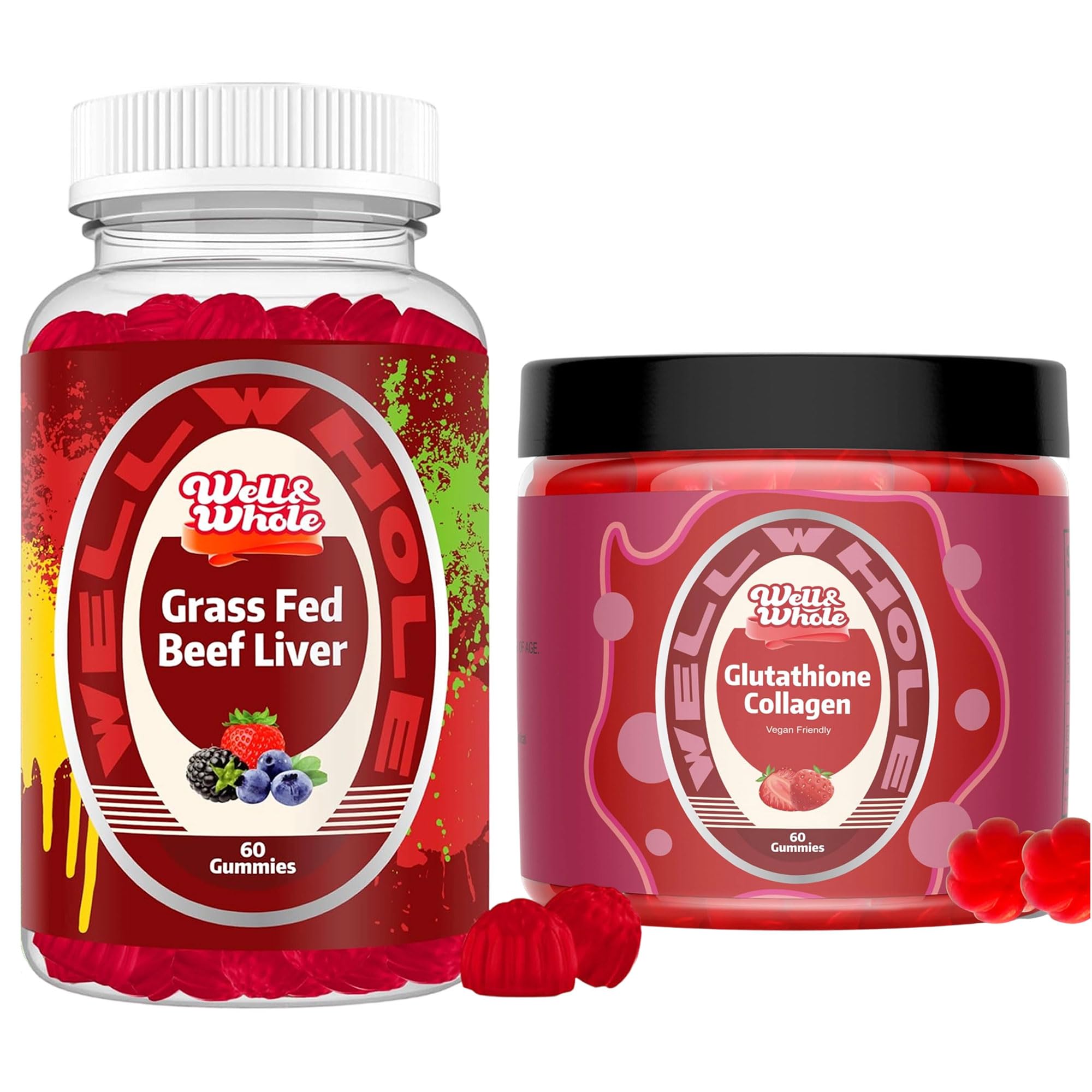 Well&Whole Grass Fed Beef Liver Gummies and Glutathione Collagen Gummies