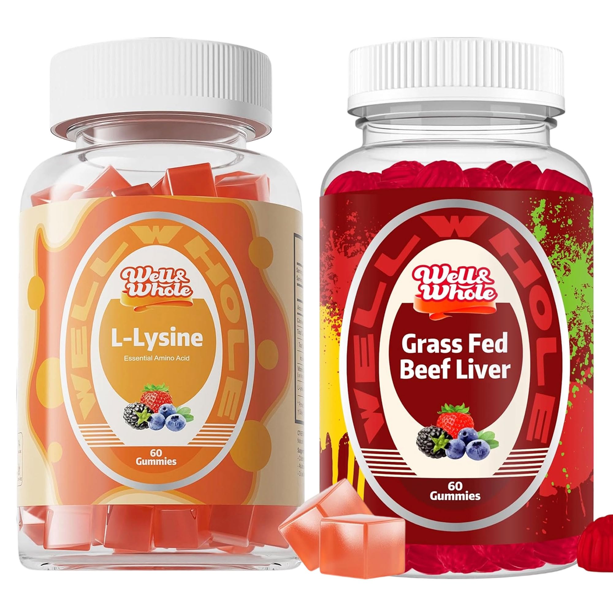 Well&Whole L-Lysine Gummies 1000mg and Grass Fed Beef Liver Gummies