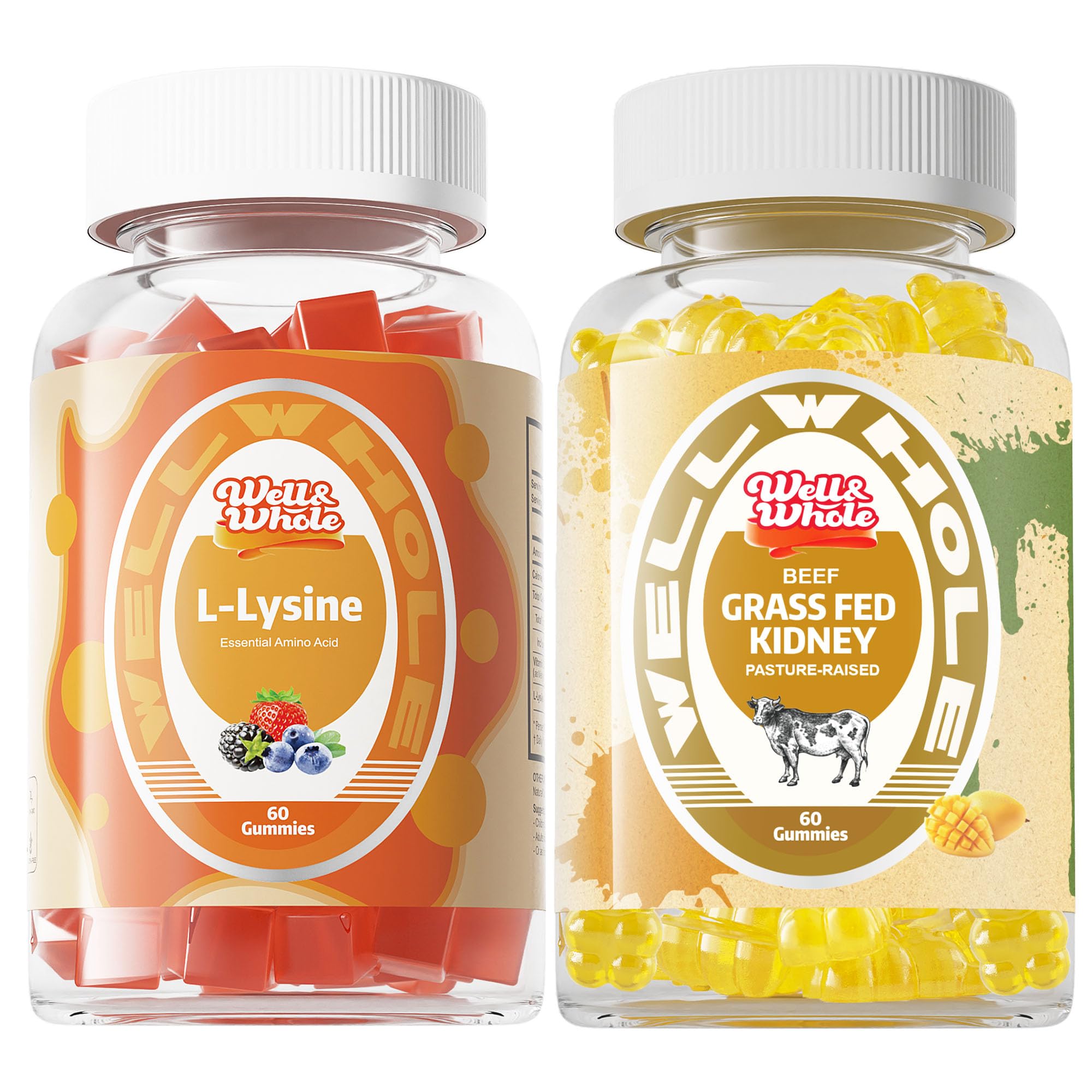 Well&Whole L-Lysine Gummies and Grass Fed Beef Kidney Gummies