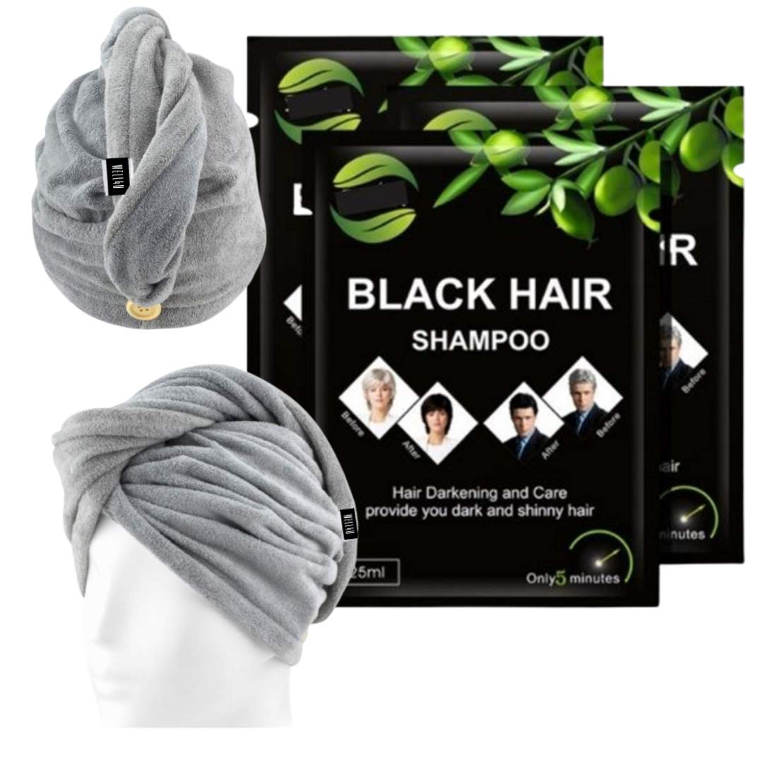 About the product: WELL4U Black Hair Shampoo Shampoo against gray hair - black hair shampoo for gray coverage Is your natural hair color black? Are you annoyed about gray hair? Do you want your black hair color back? Then use this Color Shampoo! Users know and love it. Fast discreet shipping directly from Germany! When using Black Hair Shampoo you get back shiny black hair in 10 minutes, which you can keep for up to 30 days - incl. 10 pairs of gloves! Black Hair Dye shampoo, the active substances are extracted from plants and do not contain any toxic ingredients. Instant black hair color, natural ingredients, conditioner for gentle repair of the hair structure. Forget white, gray and light hair, a hair wash with Black Hair Shampoo will give you back your youthful look, as you know it. Save yourself extensive appointments and financial effort at the hairstylists of your trust, wash as usual with Black Hair shampoo and in a few minutes - done. Users are absolutely enthusiastic about the product. The hair regains its natural color in a few seconds. More tips and suggestions see the photos. It couldn't be simpler. Shipping directly from Germany in 48 hours! Grab your chance. About the product: WELL4U MF-HAIR Turban (button towel) turban towel An absolute must-have from a certain hair length. The Well4u towel is made of quick-drying, pleasantly soft microfiber quality, making it as absorbent as it is hair-friendly. Unfortunately, it is currently only available in light gray!Do you want your black hair color back? Then use this Color Shampoo!. Save yourself extensive appointments and financial effort for shades and colors!. Gives you natural hair color and youthful look without black tint. Are you annoyed about gray hair? Forget white, gray and light hair. Very natural black hair, thanks to our hair coloring shampoo – in 10 minutes for 30 days.Black Hair Shampoo zinvolle MF-haarshampoo (handdoek met knop), voor snel drogen in een set, shampoo tegen grijs haar, zwarte haarshampoo voor grijsdekking. Over het product: WELL4U Black Hair Shampoo Shampoo tegen grijze haren - zwarte haarshampoo voor grijze dekking Is je natuurlijke haarkleur zwart? Erger je je over grijs haar? Wil je je zwarte haarkleur terug? Gebruik dan deze Color Shampoo! Gebruikers kennen en houden ervan. Snelle discrete verzending rechtstreeks uit Duitsland! Bij het gebruik van Black Hair Shampoo krijg je zwart glanzend haar in 10 minuten terug, dat je tot 30 dagen bewaart, - incl. 10 paar handschoenen! Black Hair Dye shampoo, de werkzame stoffen worden uit planten geëxtraheerd en bevatten geen giftige ingrediënten. Onmiddellijk zwarte haarkleuring, natuurlijke ingrediënten, conditioner voor zachte reparatie van de haarstructuur. Vergeet wit, grijs en licht haar, een haarwas met Black Hair Shampoo geeft je je jeugdige look terug, zoals je het kent. Bespaar jezelf uitgebreide afspraken en financiële inspanning bij de haarstylisten van je vertrouwen, zoals gebruikelijk met Black Hair shampoo wassen en in enkele minuten - klaar. Gebruikers zijn absoluut enthousiast over het product. Het haar krijgt in enkele seconden de natuurlijke kleur terug. Meer tips en suggesties zie de foto's. Eenvoudiger kan het niet. Verzending rechtstreeks vanuit Duitsland in 48 uur! Grijp je kans. Over het product: WELL4U MF-HAARTURBAN (handdoek met knop) tulbandhanddoek Vanaf een bepaalde haarlengte een absolute must-have. De handdoek van Well4u is gemaakt van sneldrogende, aangenaam zachte microvezelkwaliteit, waardoor hij net zo absorberend als haarvriendelijk is. Op dit moment helaas alleen in de kleur lichtgrijs leverbaar!Wil je je zwarte haarkleur terug? Gebruik dan deze Color Shampoo!. Bespaar jezelf uitgebreide afspraken en financiële inspanning voor tinten en kleuren!. Geeft je natuurlijke haarkleur en jeugdige look zonder zwarte tint. Erger je over grijze haar? Vergeet wit, grijs en licht haar. Heel natuurlijk zwart haar, door onze haarkleuring shampoo – in 10 minuten voor 30 dagen.