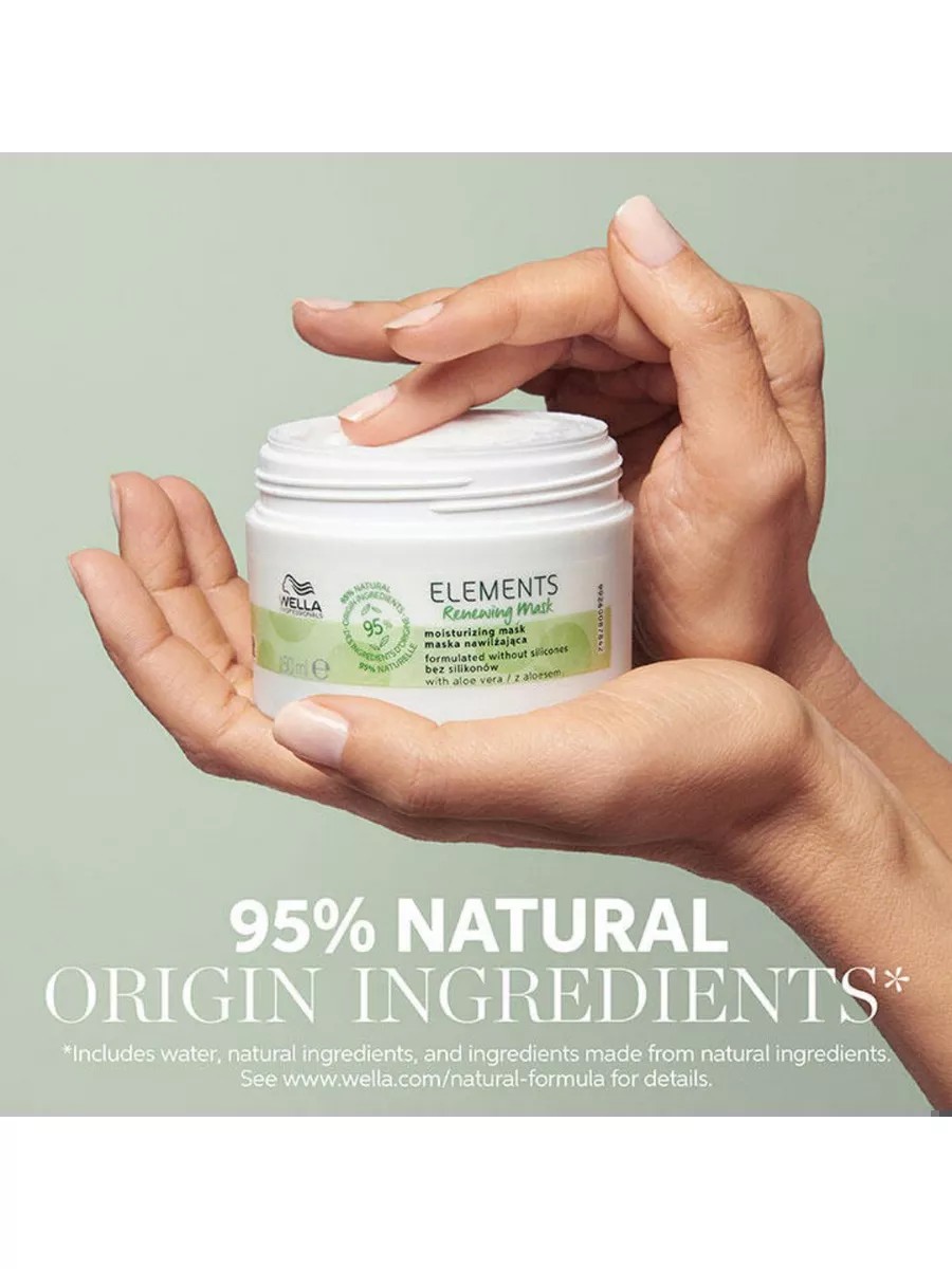 The Wella Professional Elements Renewing Mask from the organic line provides maximum care for weakened, dry, and brittle hair in need of deep hydration and restoration. The formula is developed according to European eco-cosmetics quality standards and completely excludes parabens, sulfates, silicones, artificial colors, and fragrances. The excellent caring properties of the Wella mask are based on a unique development by Wella specialists – the NuTree complex. It contains valuable wood extract, the action of which is enhanced by a high content of provitamin B5. Wood extract has a strong antioxidant effect on hair, completely stopping the oxidation of free radicals. It prevents breakage and split ends, as well as overall weakening of the hair shaft. It perfectly cares for the skin, relieves irritation, and strengthens the skin's defense mechanism. Provitamin B5 moisturizes and protects against dehydration, softens and smoothes unruly strands, and helps strengthen the keratin bonds within each hair strand. With regular use of the Wella Professional Elements Renewing Mask, curls become strong, shiny, and amazingly smooth, easy to comb and style. Directions: Apply the Wella mask to clean, slightly damp hair for 5 minutes, then rinse with water. 500 ml