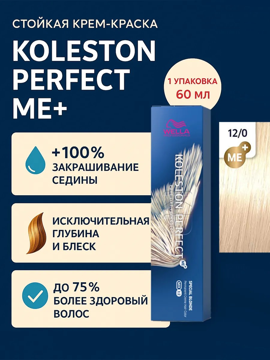 Koleston Perfect ME+ Крем-краска для волос 12/0, 60мл - 1шт. Знаменитая своим действительно совершенным, интенсивным и ярким результатом благодаря высококачественным ингредиентам и уникальной палитре богатых оттенков, она позволяет раскрыться творческому видению стилистов.