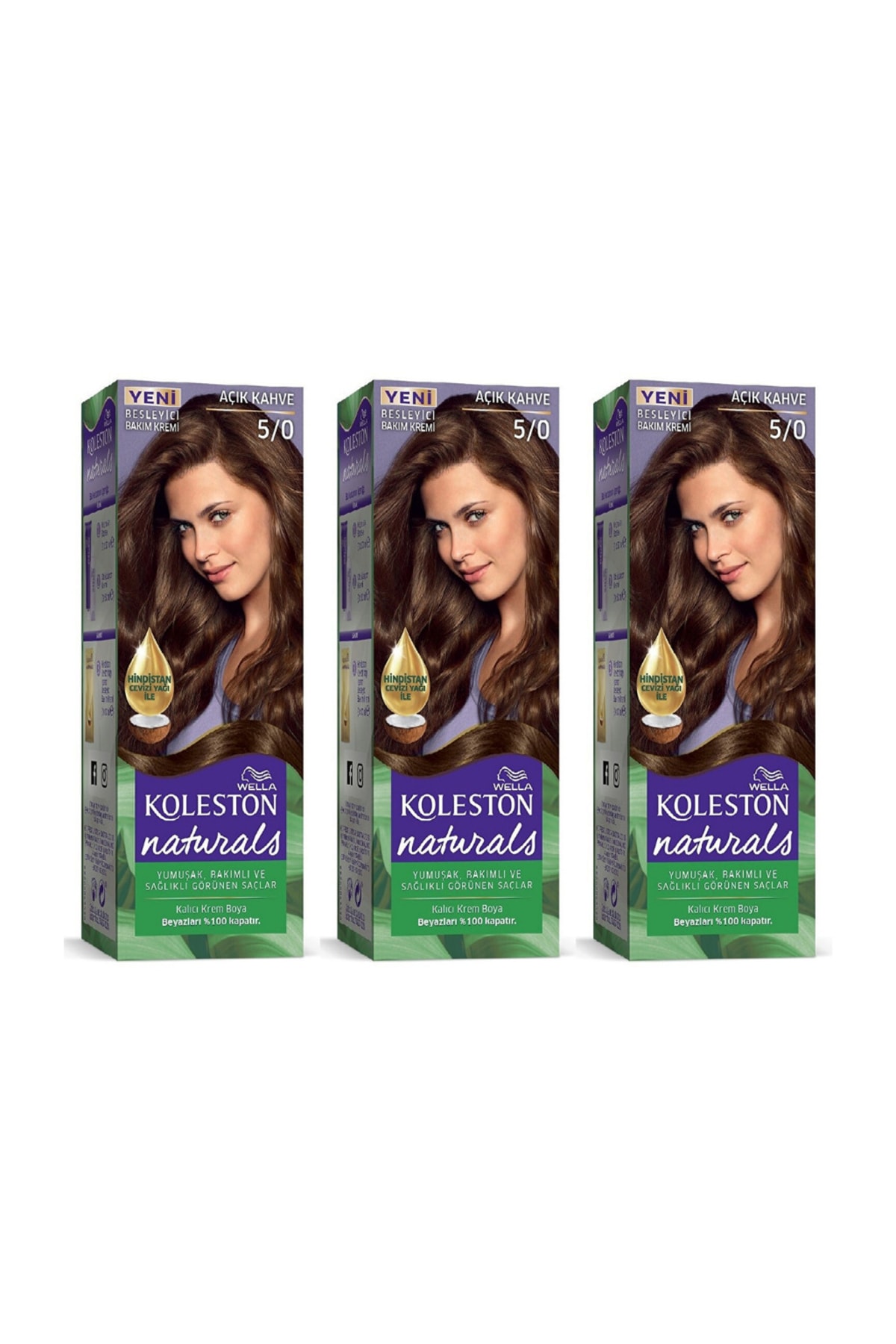 Wella Koleston Naturals Hair Dye 5/0 Light Brown 3 Pieces